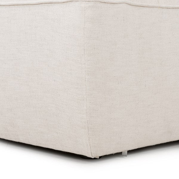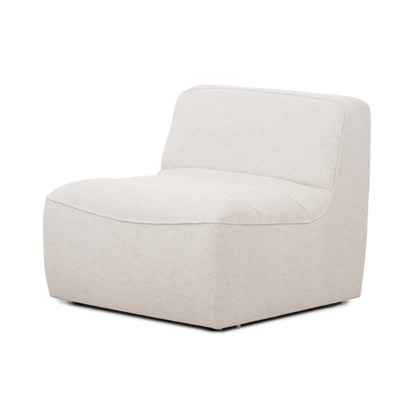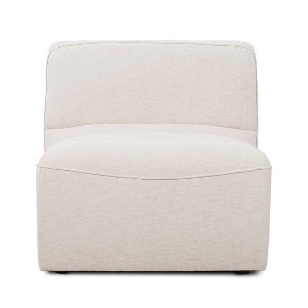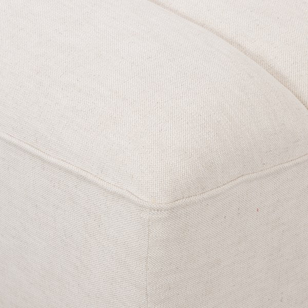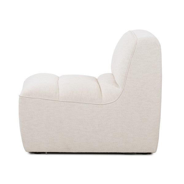 Sophistication defined. Made from a just-right blend of cotton and linen, wide horizontal channeling keeps the eye moving while creating a perfectly comfortable sit. Armless piece to matching sectional.