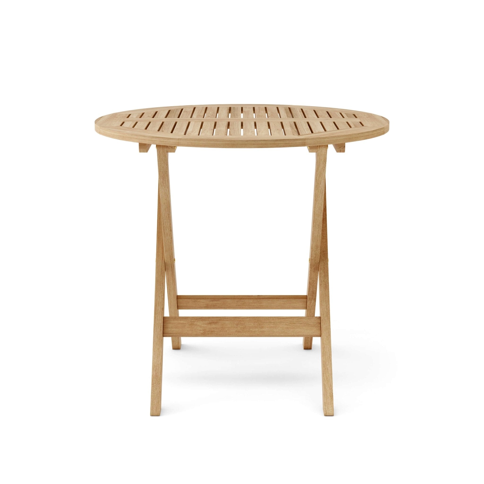 The functional Chester 32” Round Picnic Folding Table features an easy fold table great for portability and storage. Easy to carry, it features a design with a handle that can be folded completely flat. This feature enables many chairs to fold and stack together when not in use. It is perfect for boating, restaurant, and cafe use where space is limited or when chairs are only required occasionally. A look beyond your imagination, it is made of leftover Grade-A teak coated in a waterbased finish.