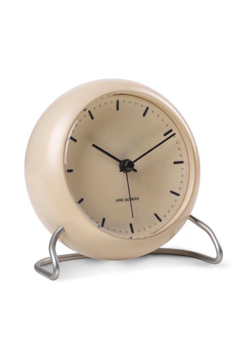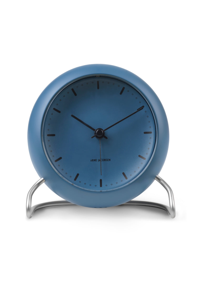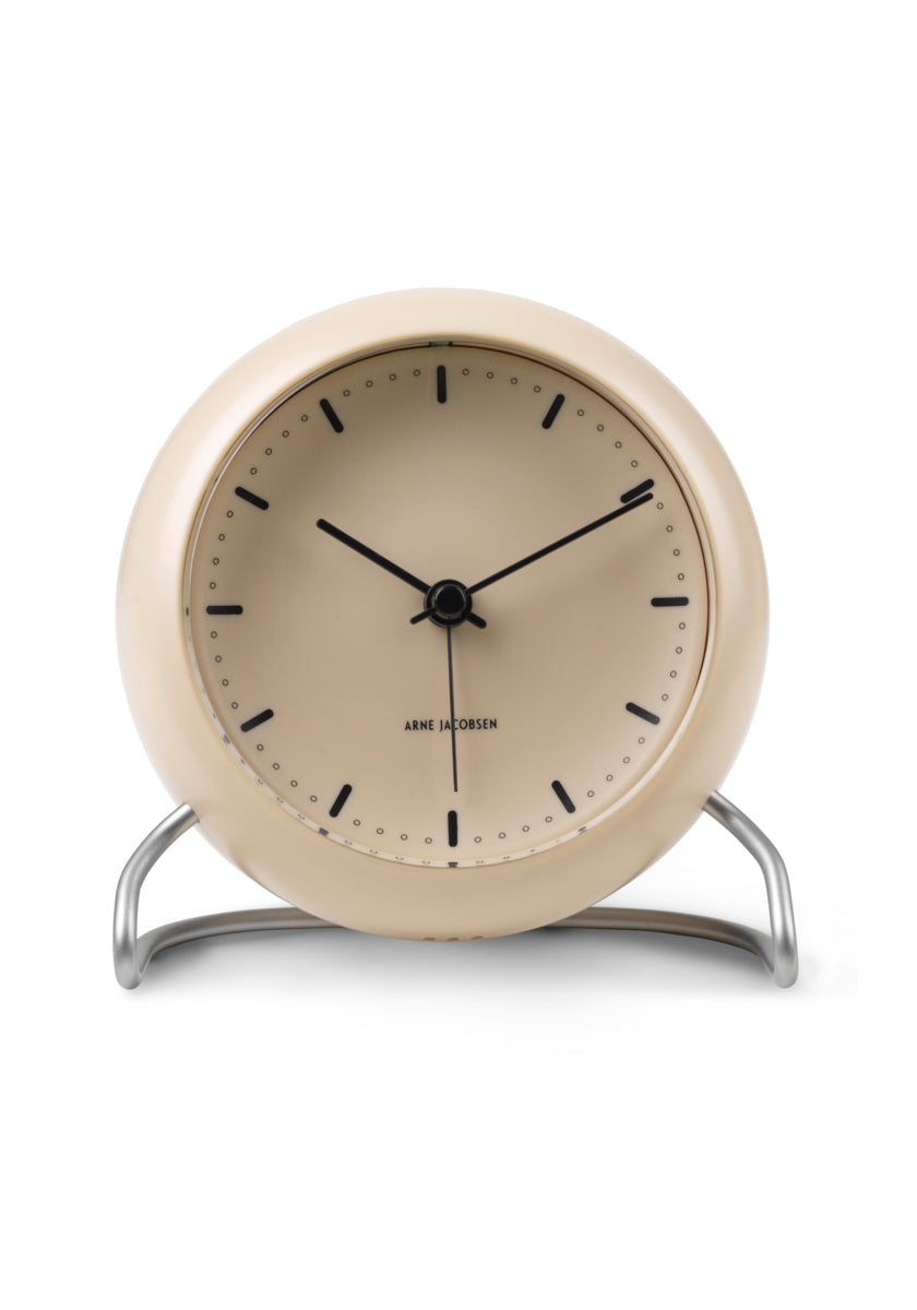 The world-renowned architect's table clock with alarm feature was created in 1939. Its graphic look and metal base, clearly referencing his own Ant and No. 7 chairs, make the clock an ideal gift for the design enthusiast. The clock is perfect for any contemporary home. With its updated features, such as snooze and light sensor, it doubles as an efficient alarm clock.