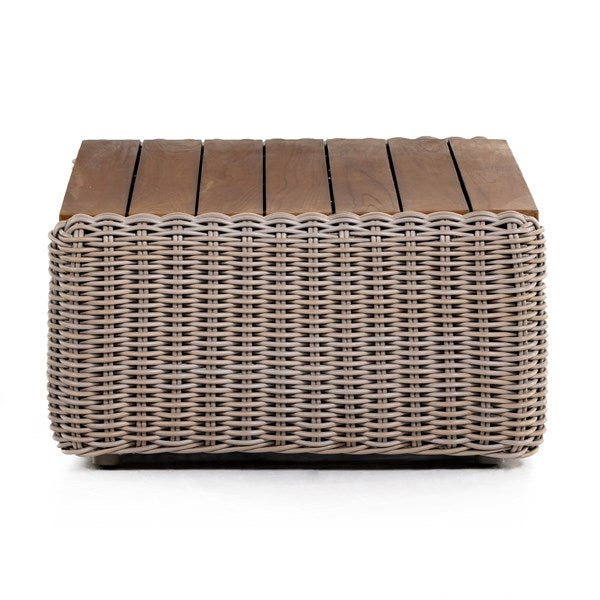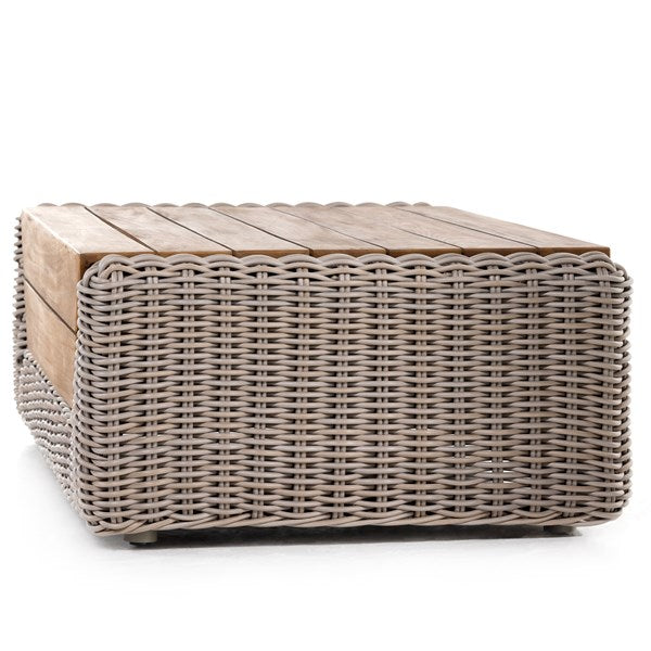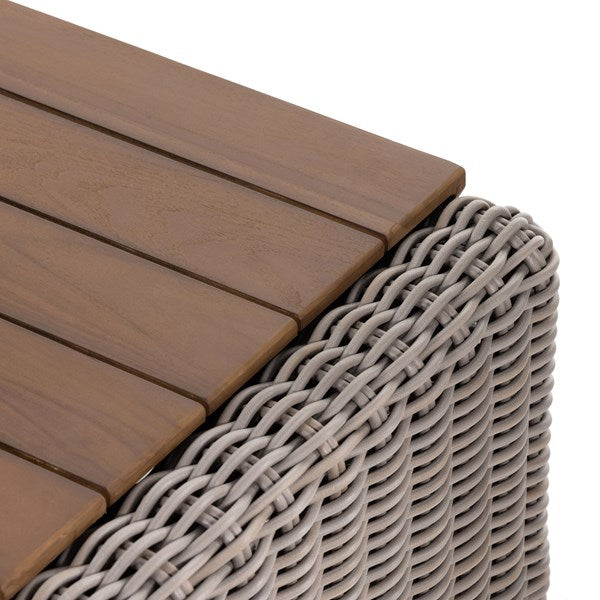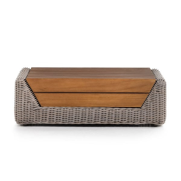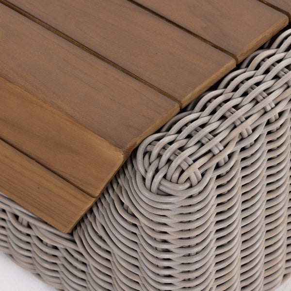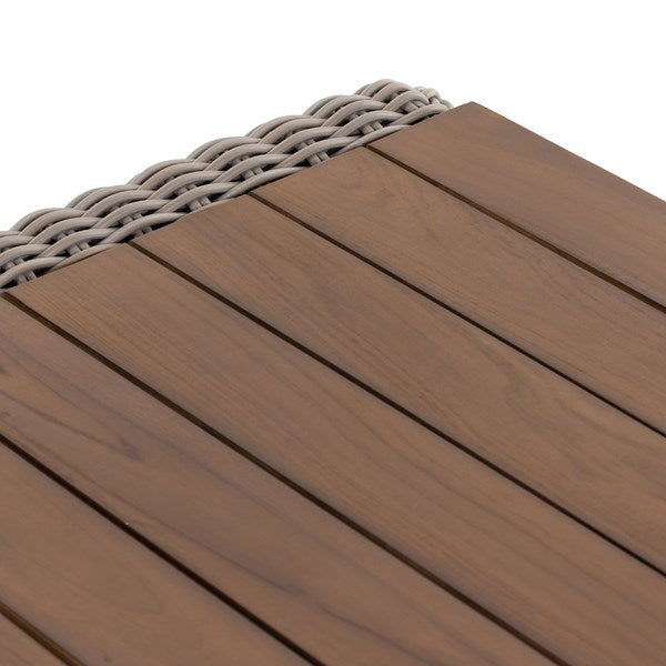 Style and durability fuse for the best of both worlds. Woven all-weather wicker forms an overscale angled frame for FSC-certified teak. Pairs perfectly with everything in our Como Outdoor Suite. Cover or store indoors during inclement weather and when not in use.