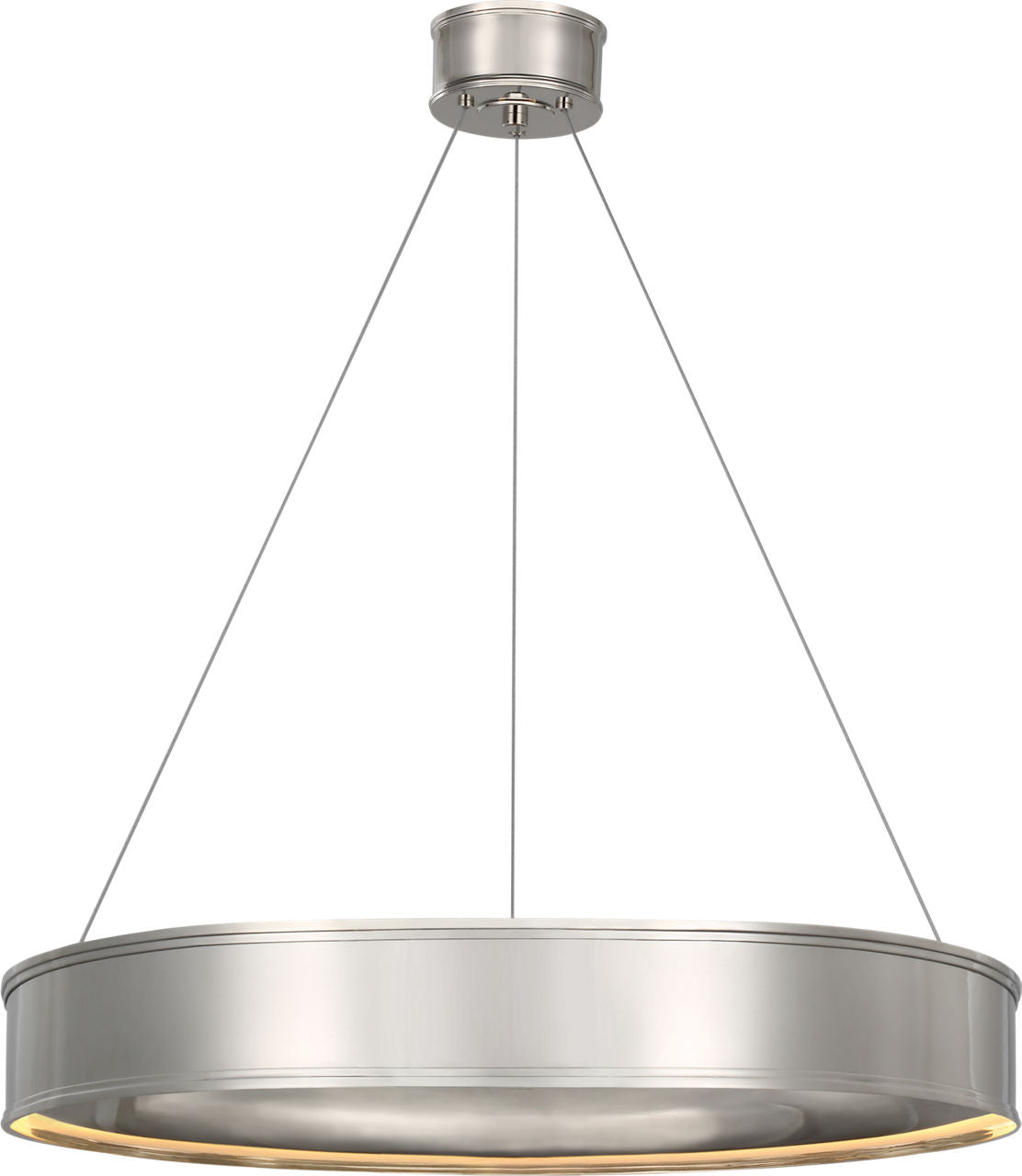 A versatile range that showcases sleek minimalism, the Chapman & Myers Connery series brings classic architectural elements to modern lighting. Available as both flush mount and chandelier styles, the designs showcase a statement metal ring, trimmed on the top and bottom edges, illuminated by LED light reflected on the inner surface. Contemporary and jewelry-like, these pieces will lend a sophisticated touch to homes, from living and dining rooms to kitchens, bedrooms and entryways.