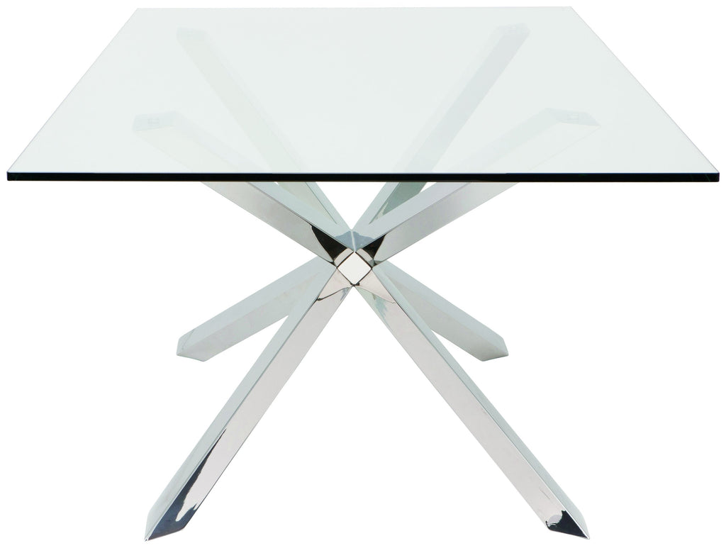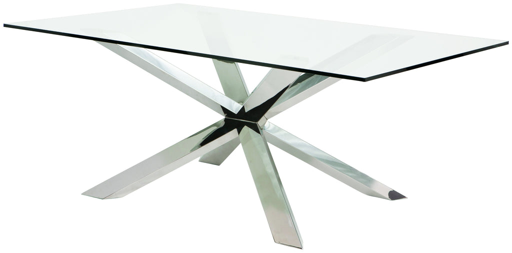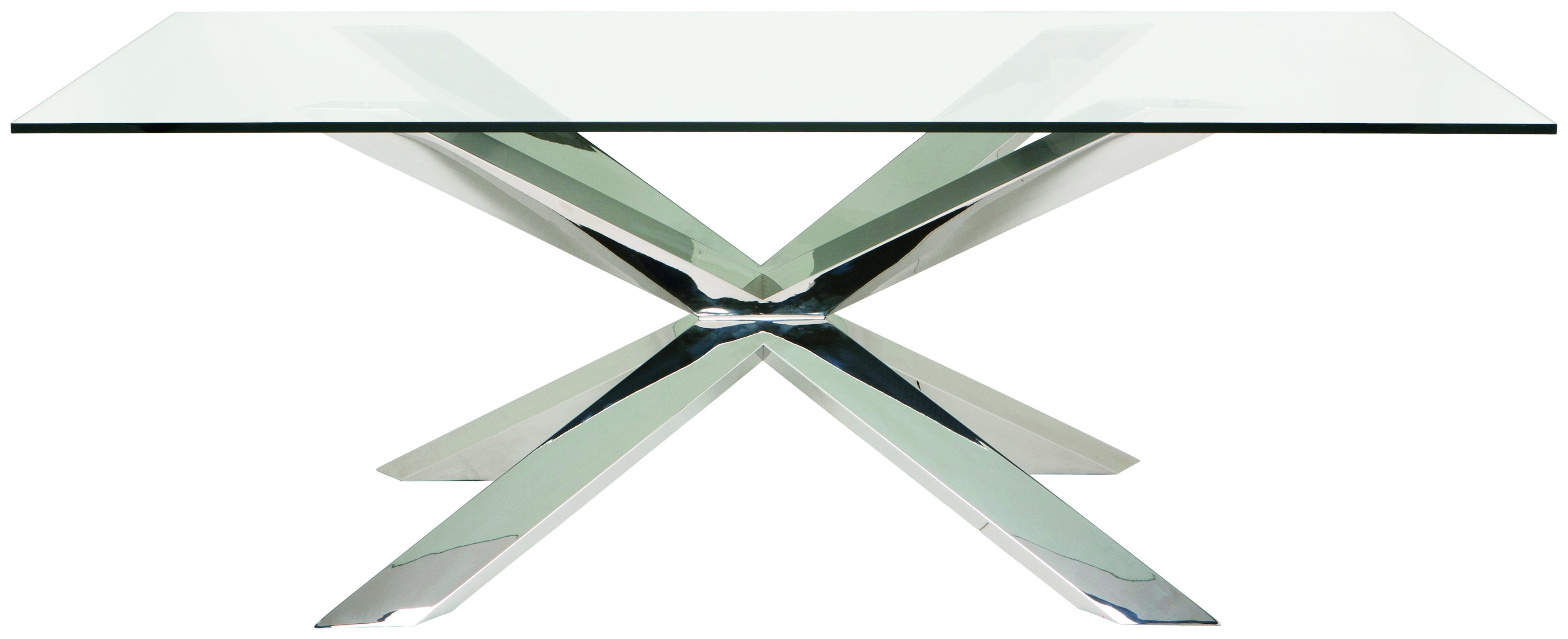 The Couture dining table is an inspired example of bold contemporary design pairing brilliant stainless steel with clear tempered glass. The Couture's appeal lies in contrasts, the union of a dynamic steel frame with a sober handsome glass table top, the result striking.