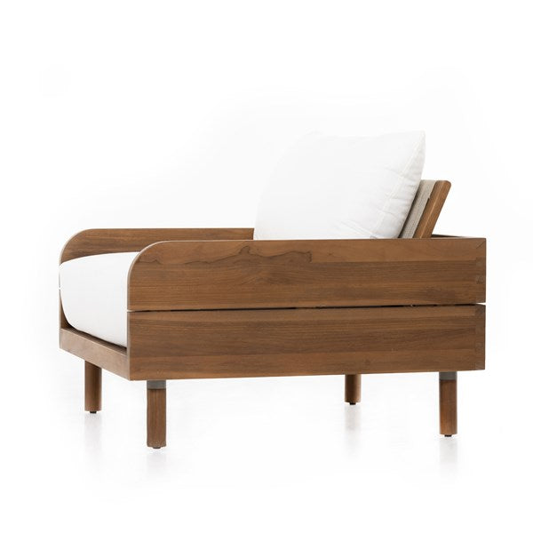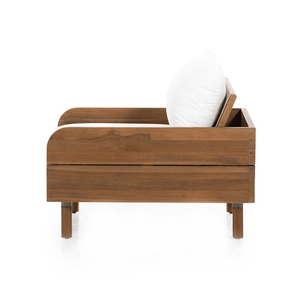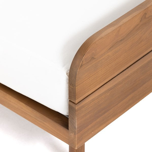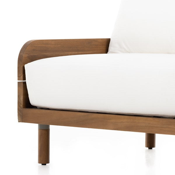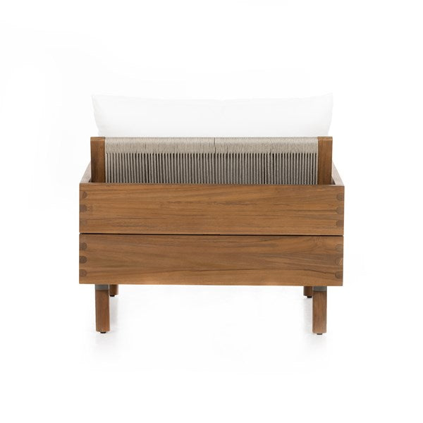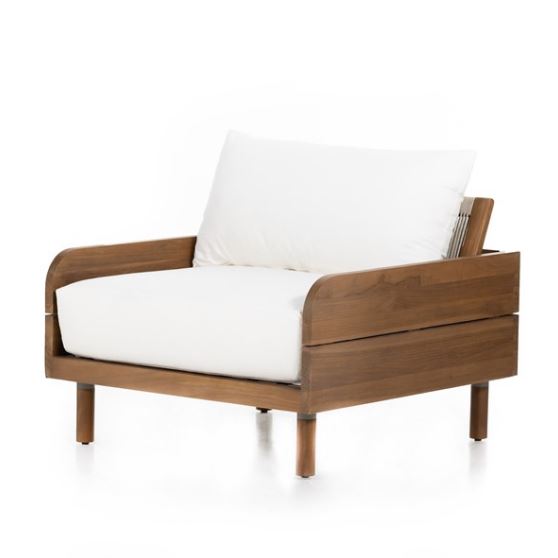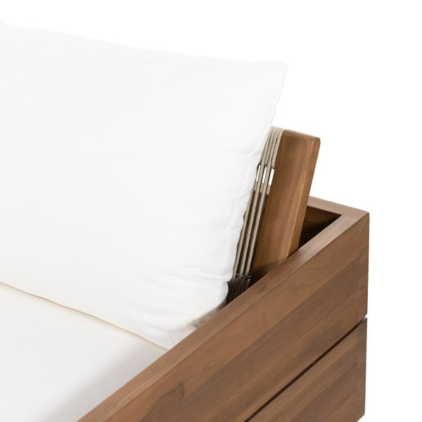Crisp, clean and prime for outdoor lounging. FSC-certified teak forms an adjustable frame for outdoor-friendly cushioning in an invitingly neutral ivory, with linear rope bringing unforeseen texture to the back. Cover or store indoors during inclement weather and when not in use.