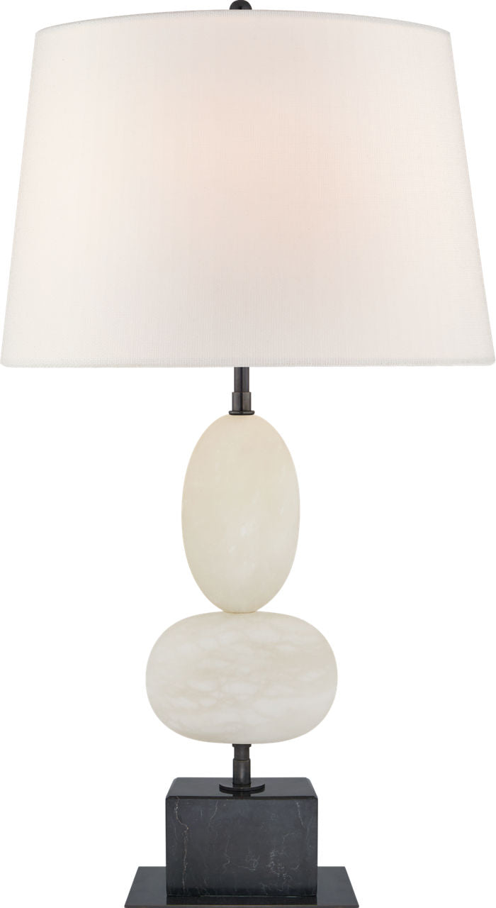The Dani Medium Table Lamp has a classic design that will enhance any space. It features a sleek alabaster finish and a linen shade. This table lamp provides a warm and inviting glow, perfect for a living room, bedroom, or office.