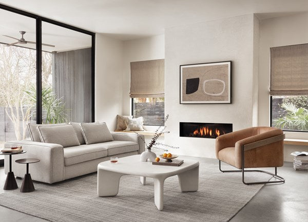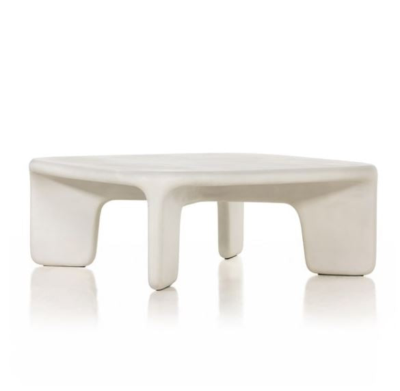 Adobe vibes. Made entirely from white-finished cast concrete, soft, chunky proportions lend a look of depth to this voluminous, uniquely sculpted coffee table.