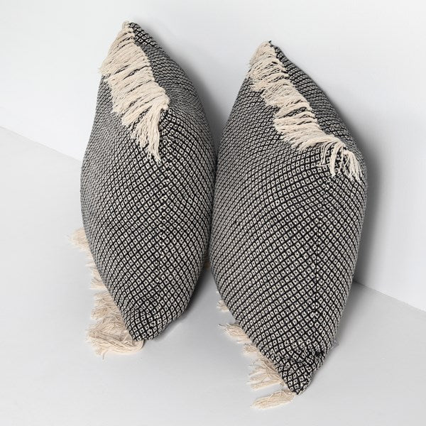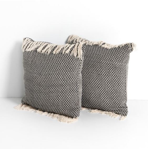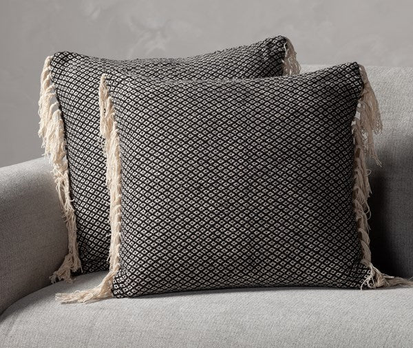 Toss in some texture. Set of woven cotton throw pillows, with a diamond pattern and fringe for flair.