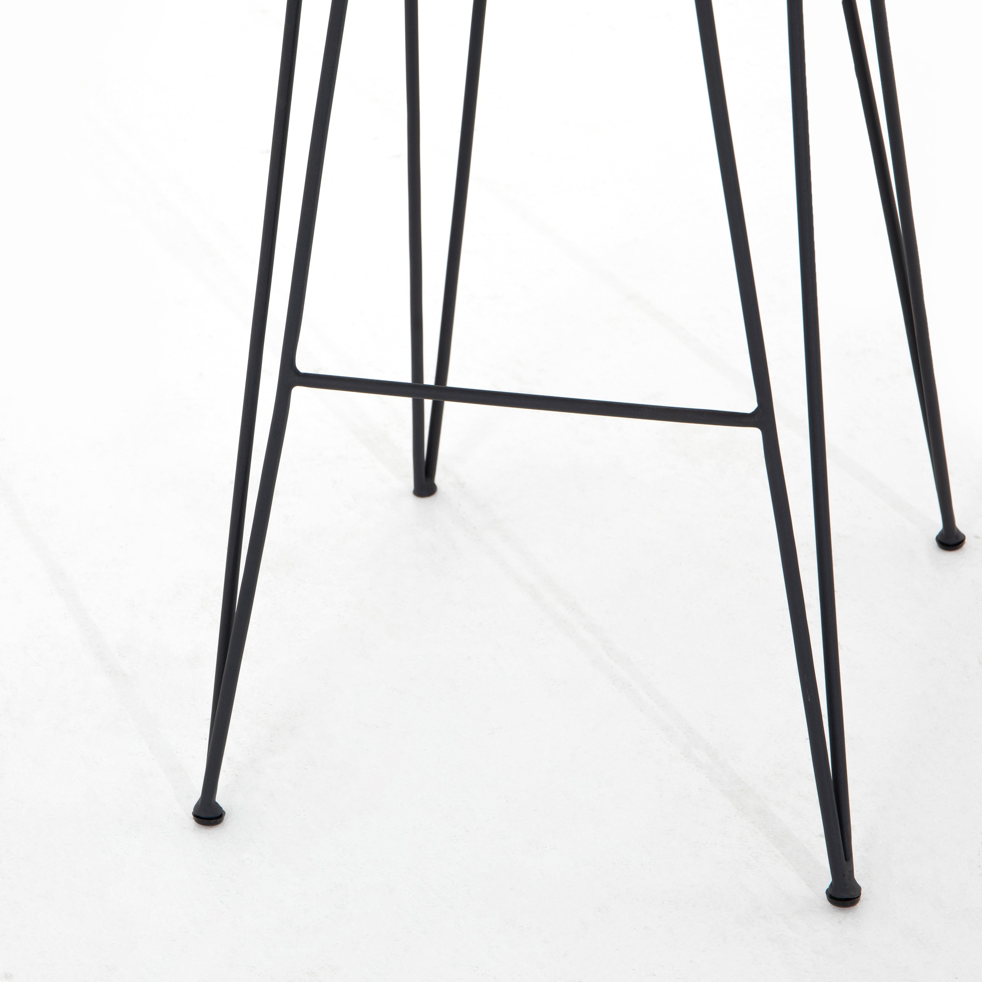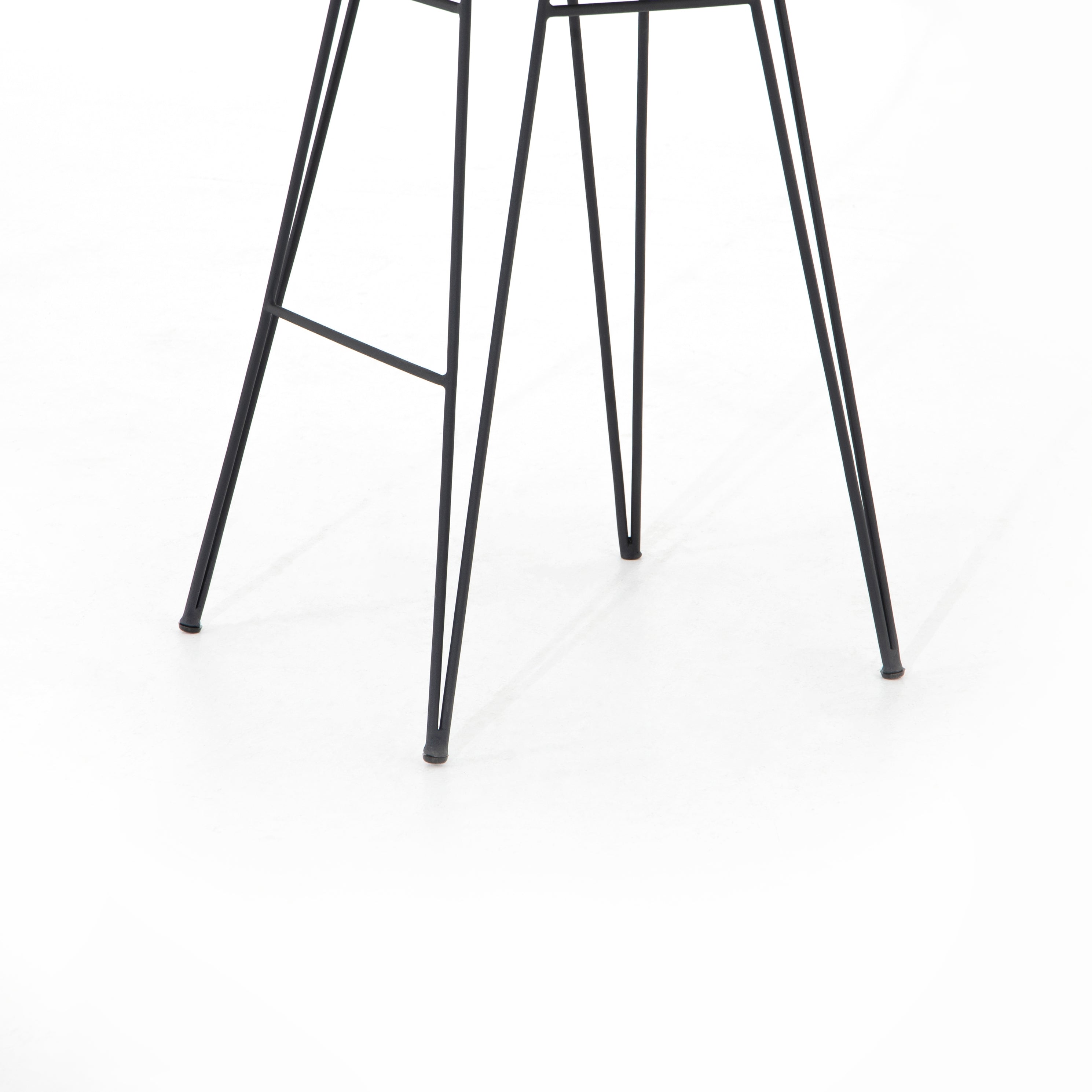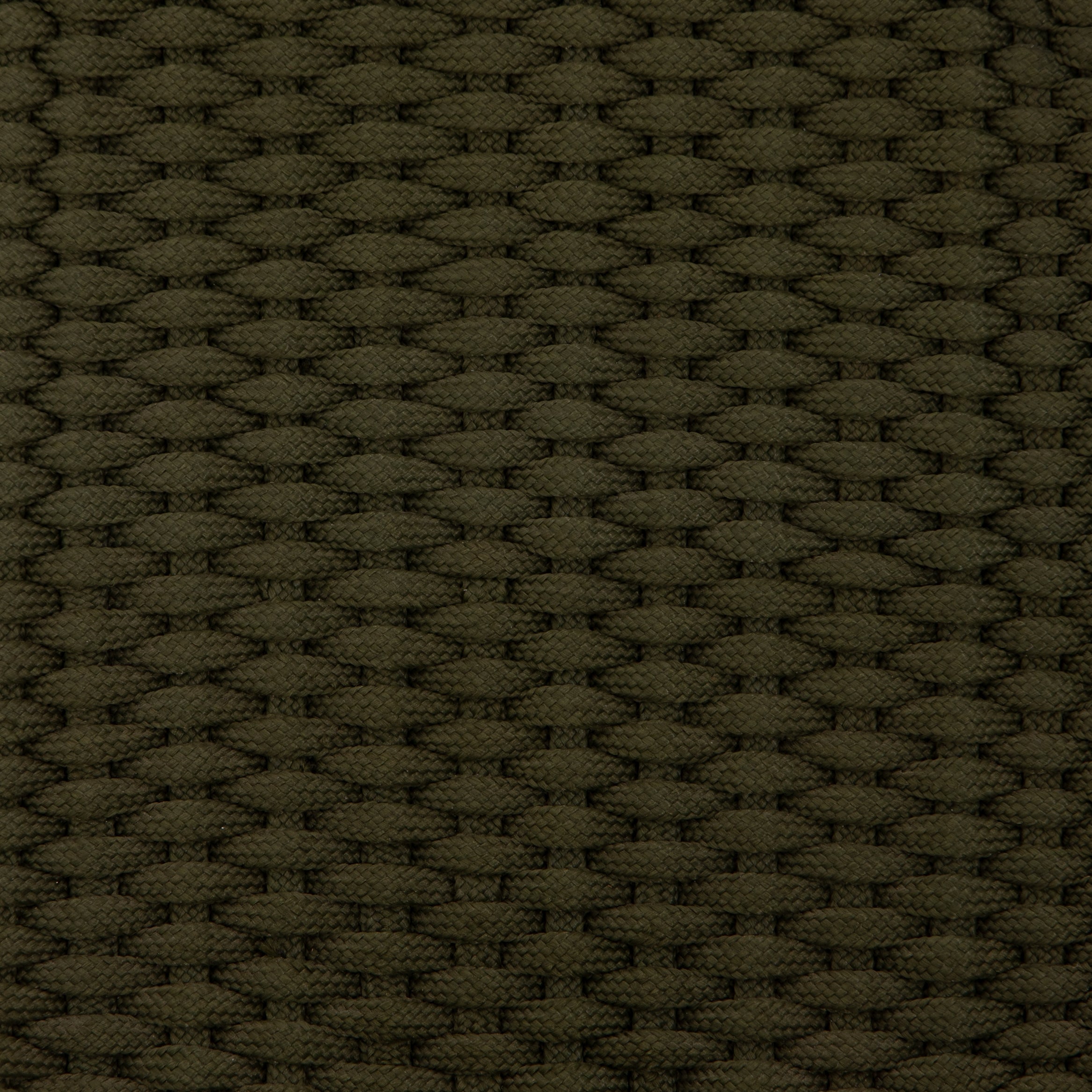 Armless olive seating weaves for fresh texture, with black hairpin legs and a swivel adding a fashion-forward touch. Cover or store indoors during inclement weather and when not in use.