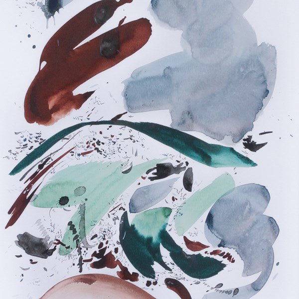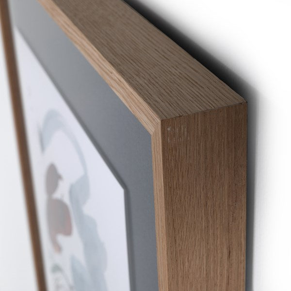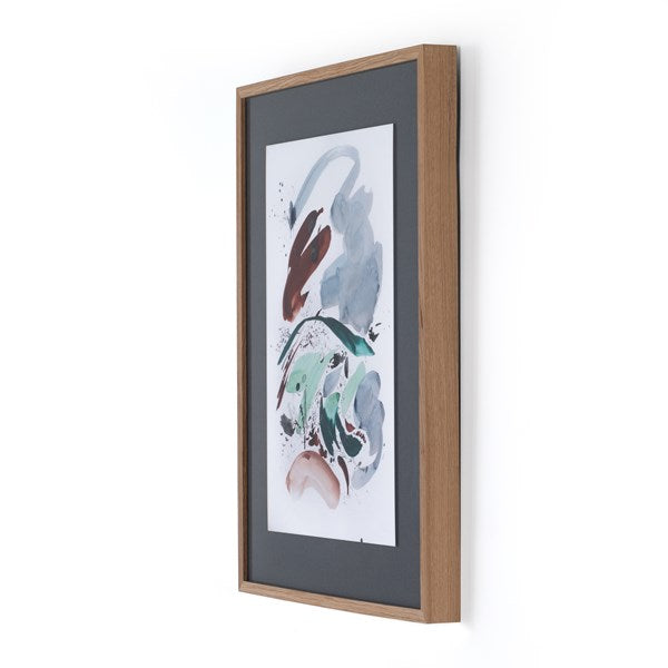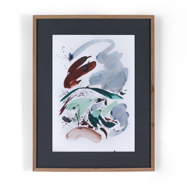 A beautifully abstract work by Atlanta painter Christina Kwan, printed on white watercolor paper and framed within vertical-grain oak. Handmade in Austin, Texas.