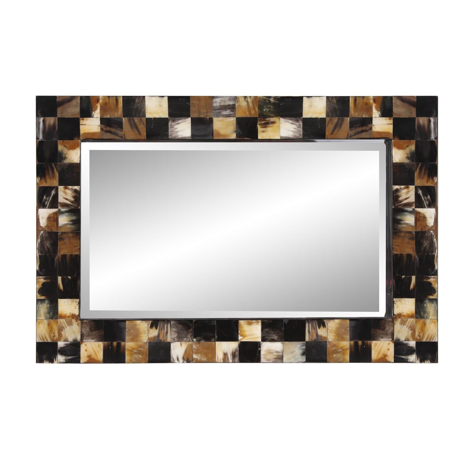The Elias collection features inlaid brown and black colored horn from the Asiatic buffaloes. The rich color tones varying from cream to beige to rich dark ebony truly makes these pieces standout. Each design is handmade by local craftsmen who cut, sand, and polish each piece of horn to be expertly applied to the base. Because they are made by hand, each piece is unique and no two will be exactly alike. D-rings are affixed to the back of the mirror so it is ready to hang in either a vertical or horizontal orientation right out of the box!