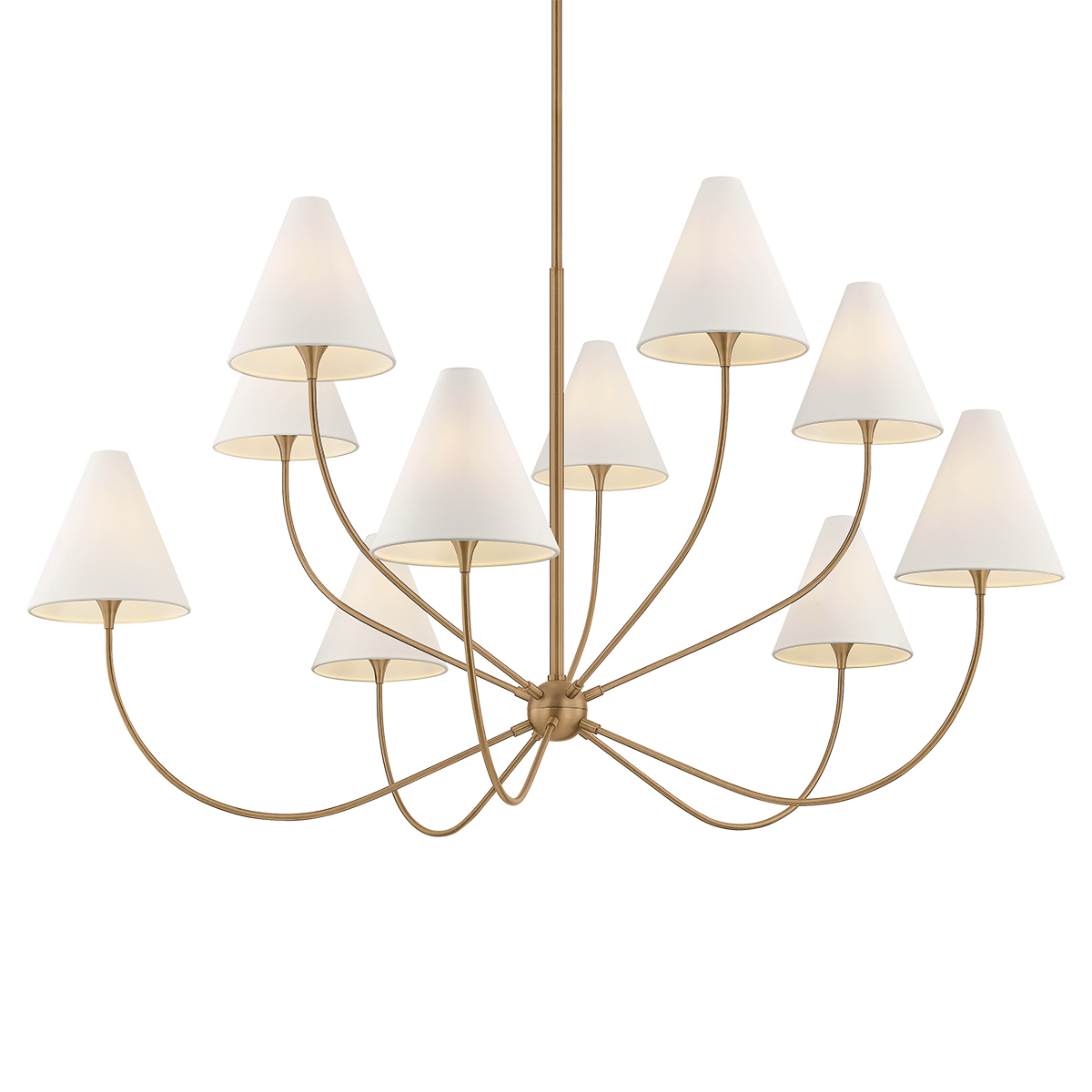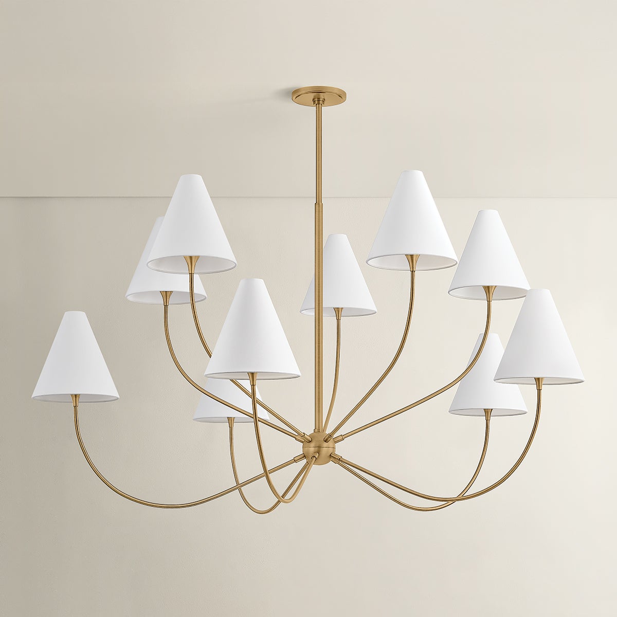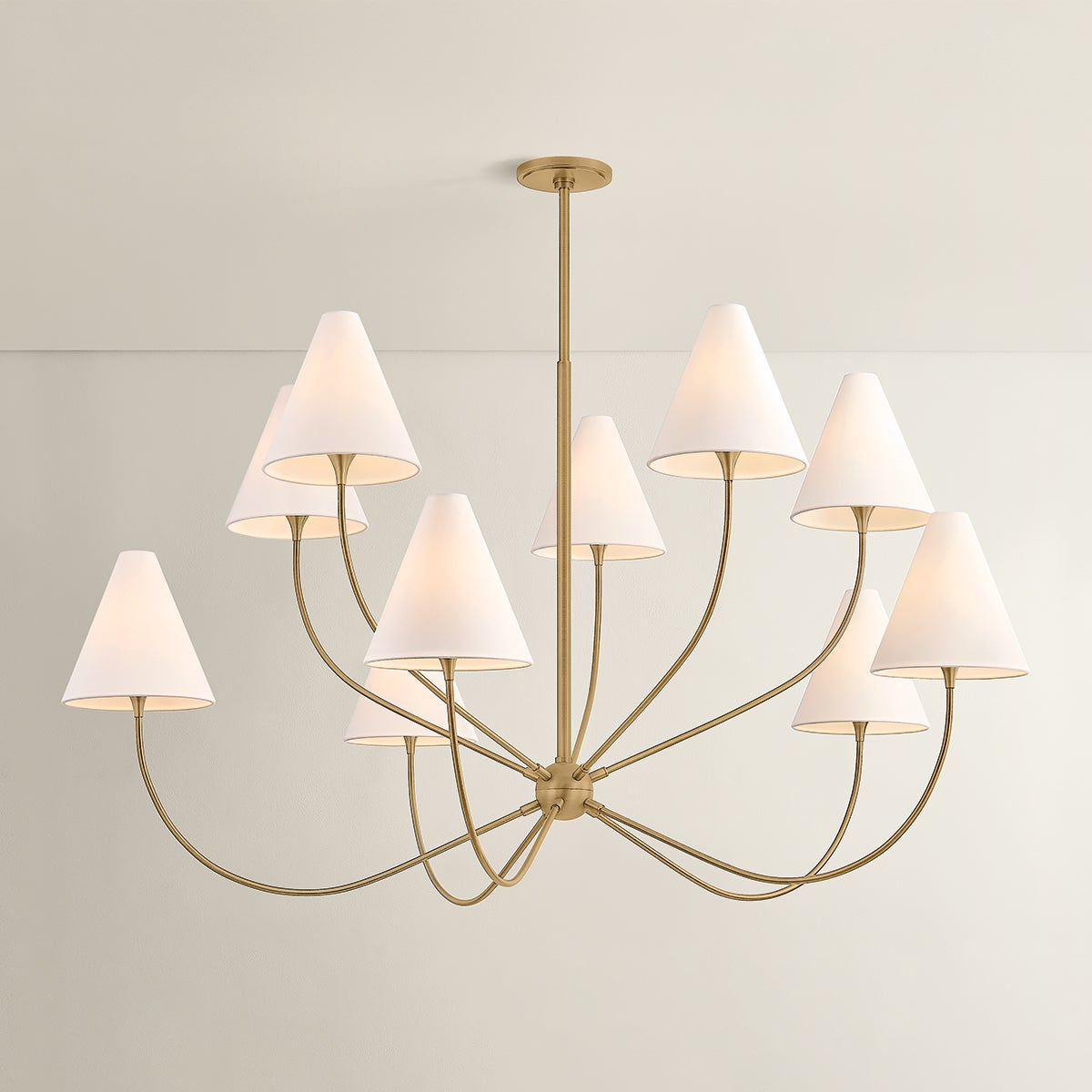 A nature-inspired take on timeless silhouettes, Evermore is defined by its airy, voluminous shape, graceful arcing arms, and petite off-white linen shades. Each fixture appears to reach upward—evoking the gentle growth of wild mushrooms. A Patina Brass finish adds warmth and vintage polish. Available as a 1-light sconce, 6- and 10-light chandeliers, and a 4-light linear, Evermore is a sculptural lighting fantasy for the modern home.