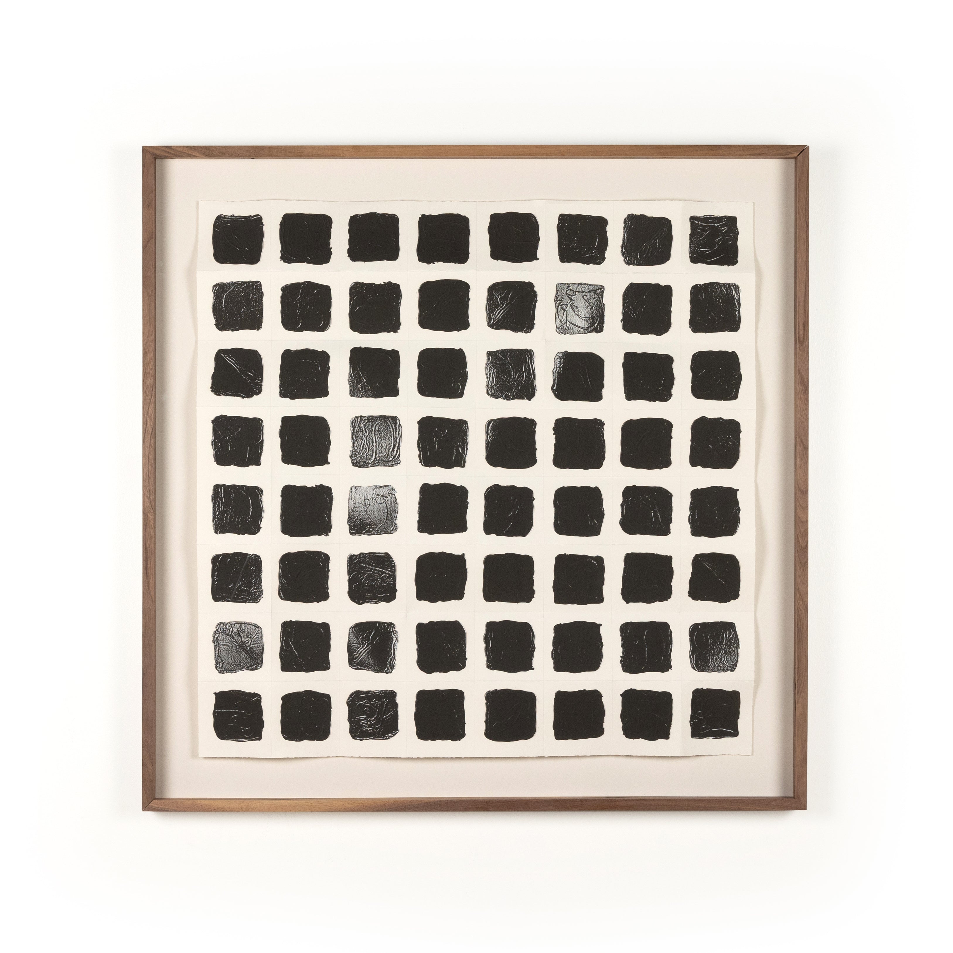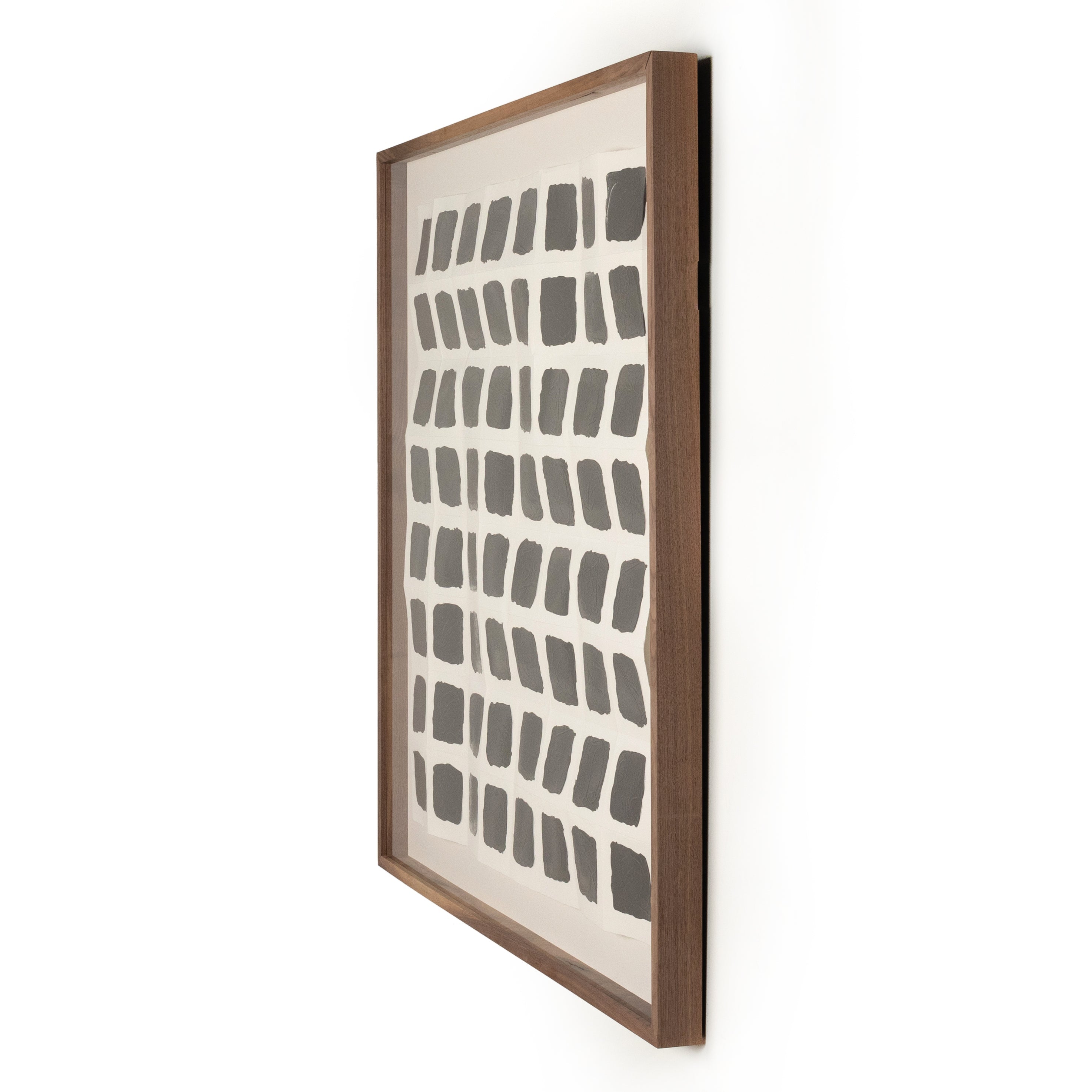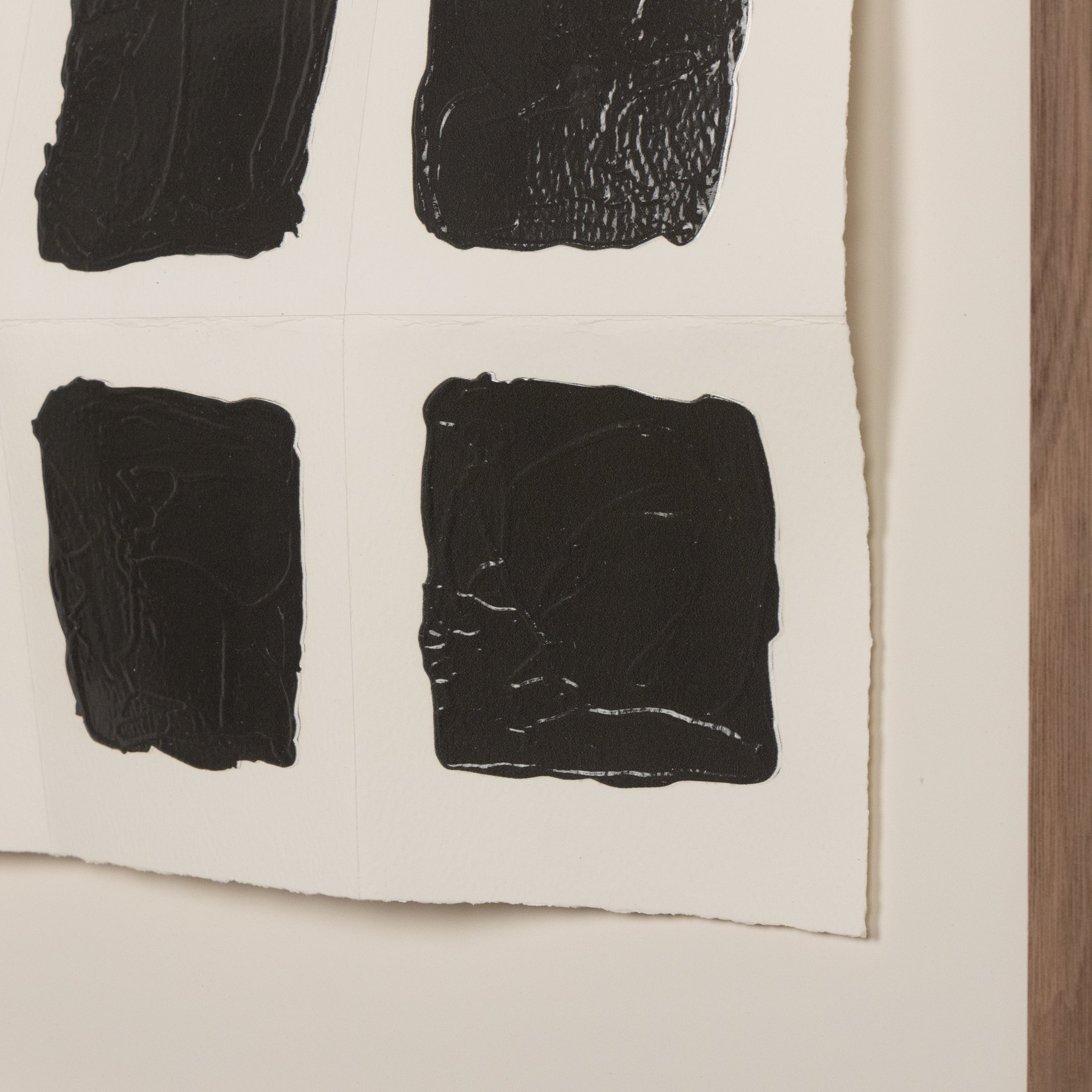 A study based on handpainted, textural black paint swatches full of ripples, folds and curiosity. Printed on a large piece of heavy texture paper that's folded and loosely mounted within the frame for enhanced movement and shadows across the piece. If not currently in stock, this texture-enhanced piece ships within three weeks. Handmade in Austin, Texas.