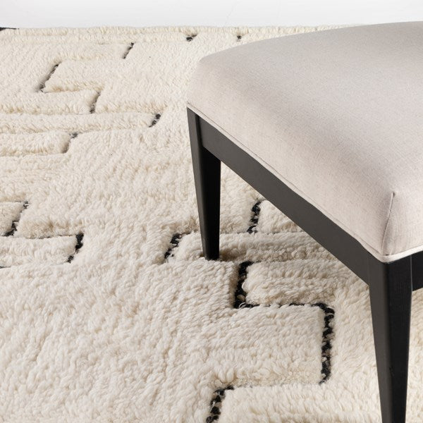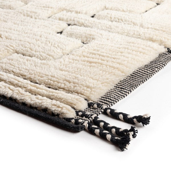 Made from a lush blend of wool and cotton, braided pattern detailing and corner tassels speak to the authentic Morrocan inspiration behind a cream-colored area rug.