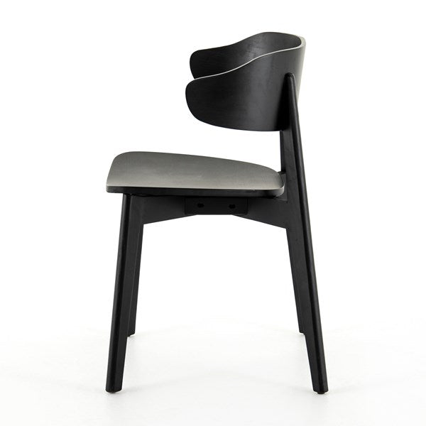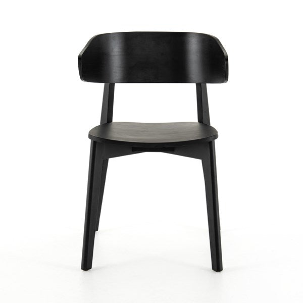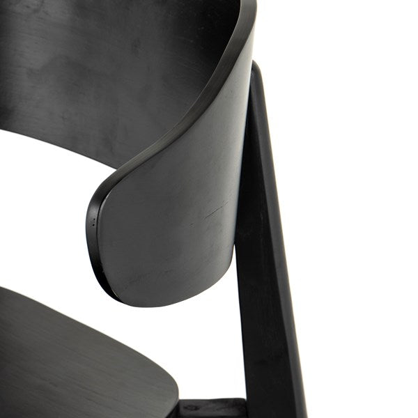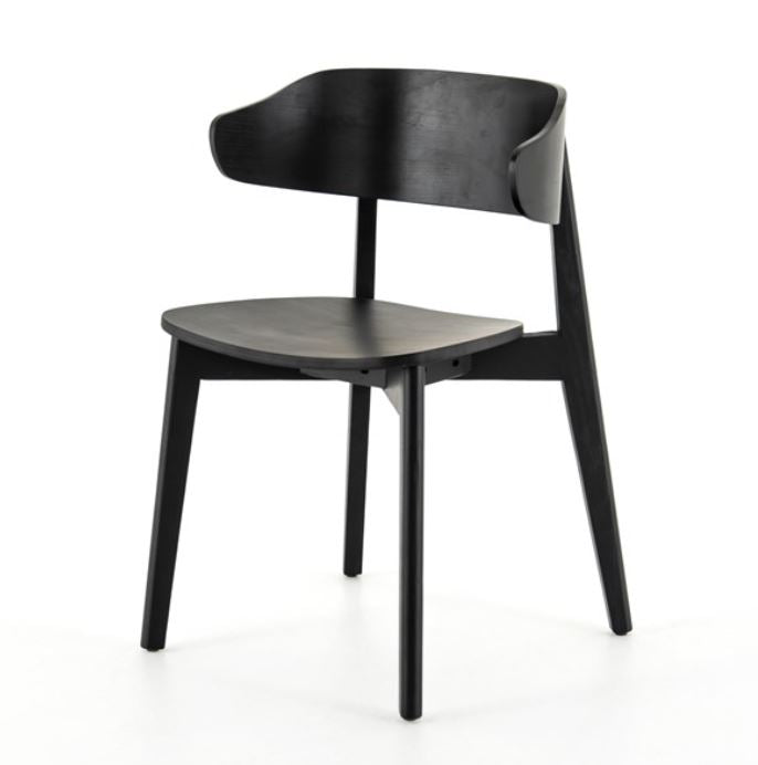 A fresh, exaggerated take on the wing-back dining chair. Finished a classic jet black, a mix of solid ash and ash veneer makes a modern and shapely seating statement with mid-century undertones.
