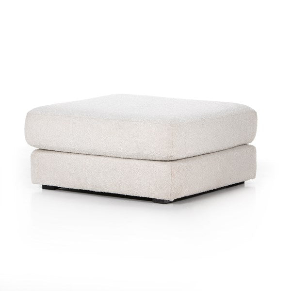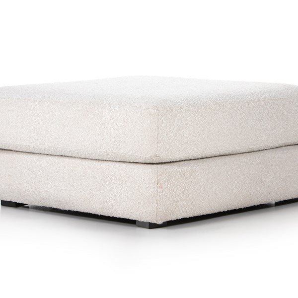 Style meets sensibility. Upholstered in a textural boucle, clean, simple lines define clever modular seating in a beautifully versatile cream. Ottoman piece to matching sectional.