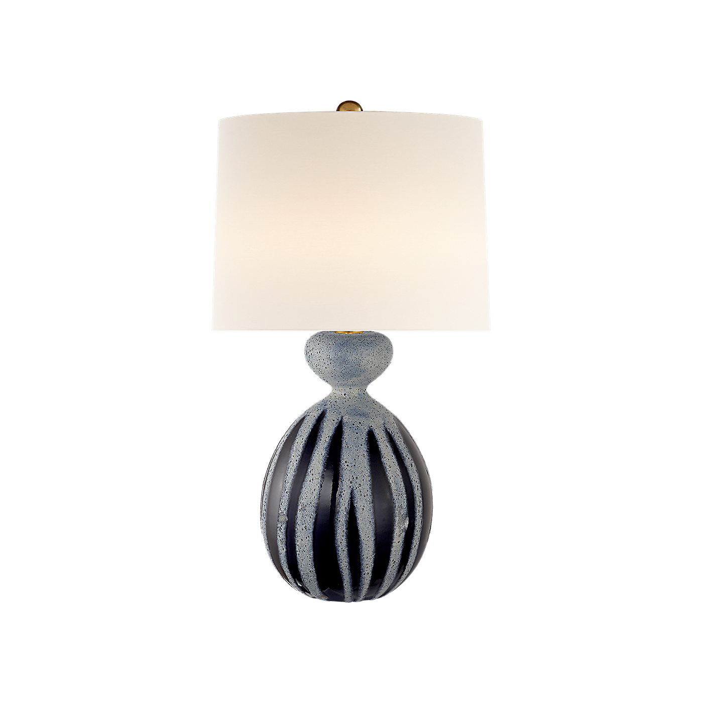 The Gannet Table Lamp features a reactive ceramic glaze finish. The shade is made of linen. It uses one A21 bulb with a maximum wattage of 150. This table lamp offers a stylish design.