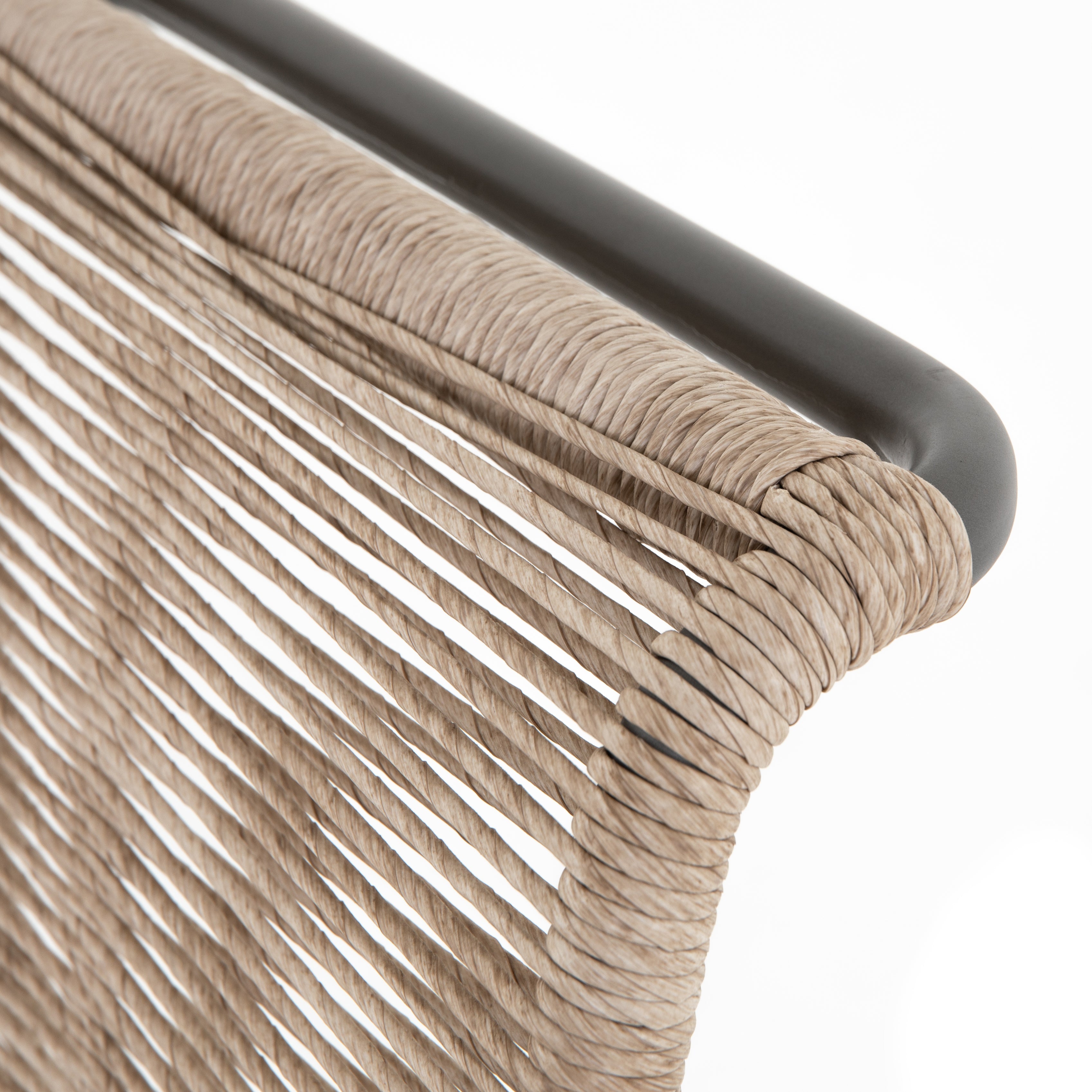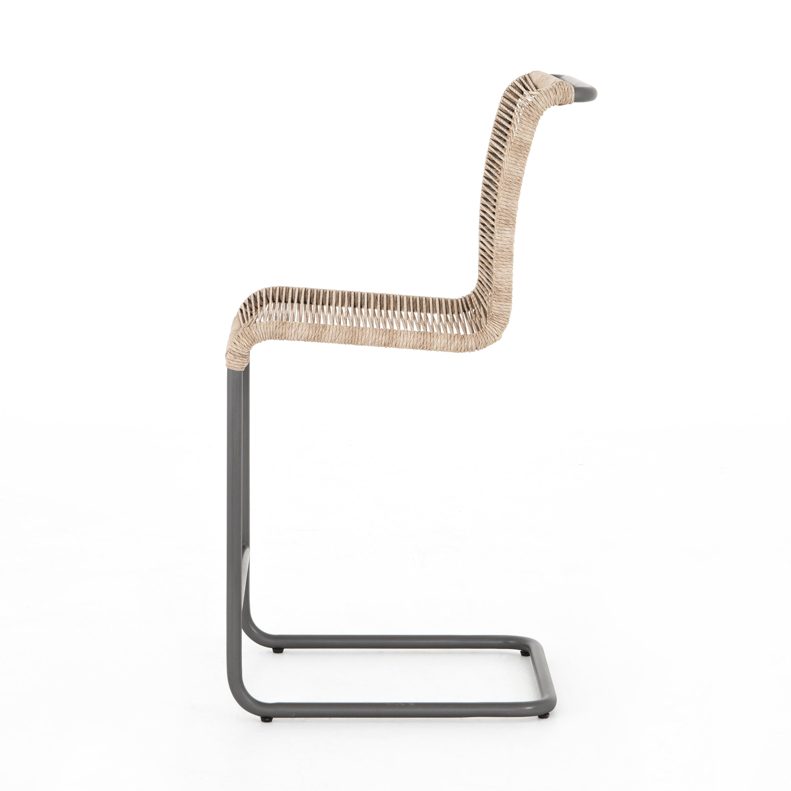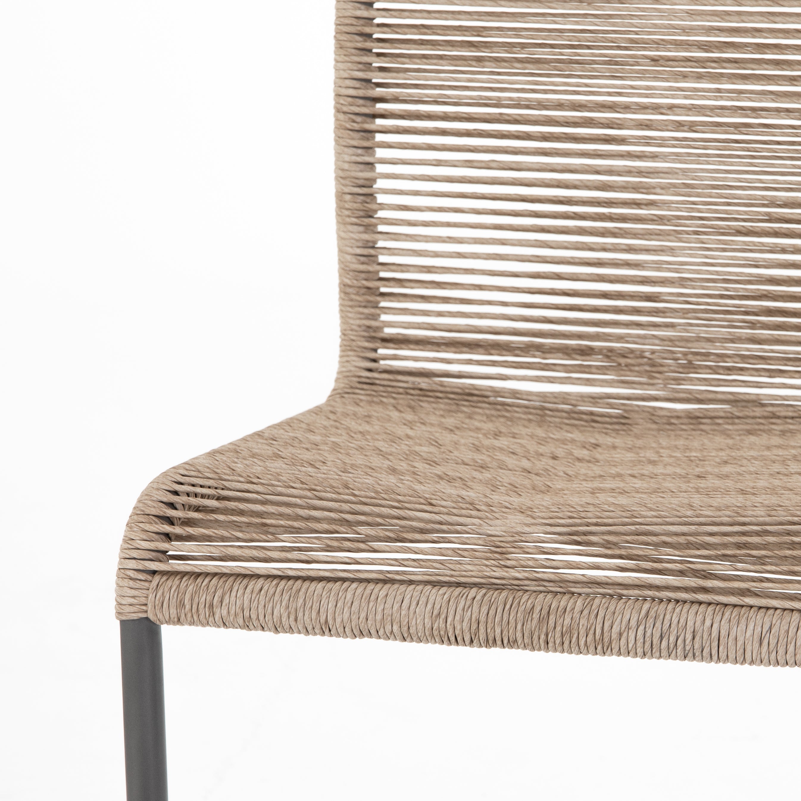 Attractive curvature summons a sit. A slim, gunmetal-finished iron frame supports woven all-weather wicker seating, for a textural twist on cantilever-style counter seating. Cover or store indoors during inclement weather and when not in use.