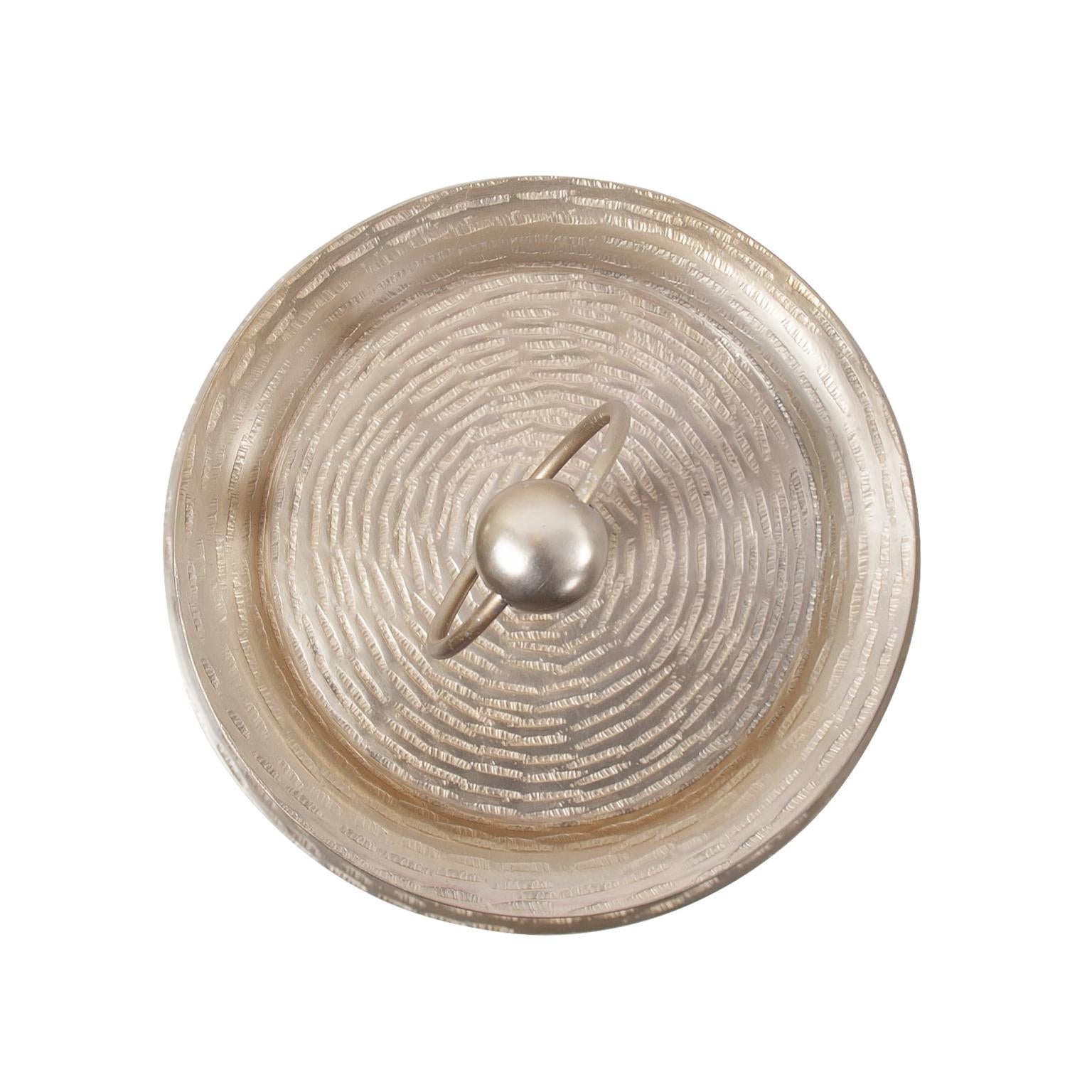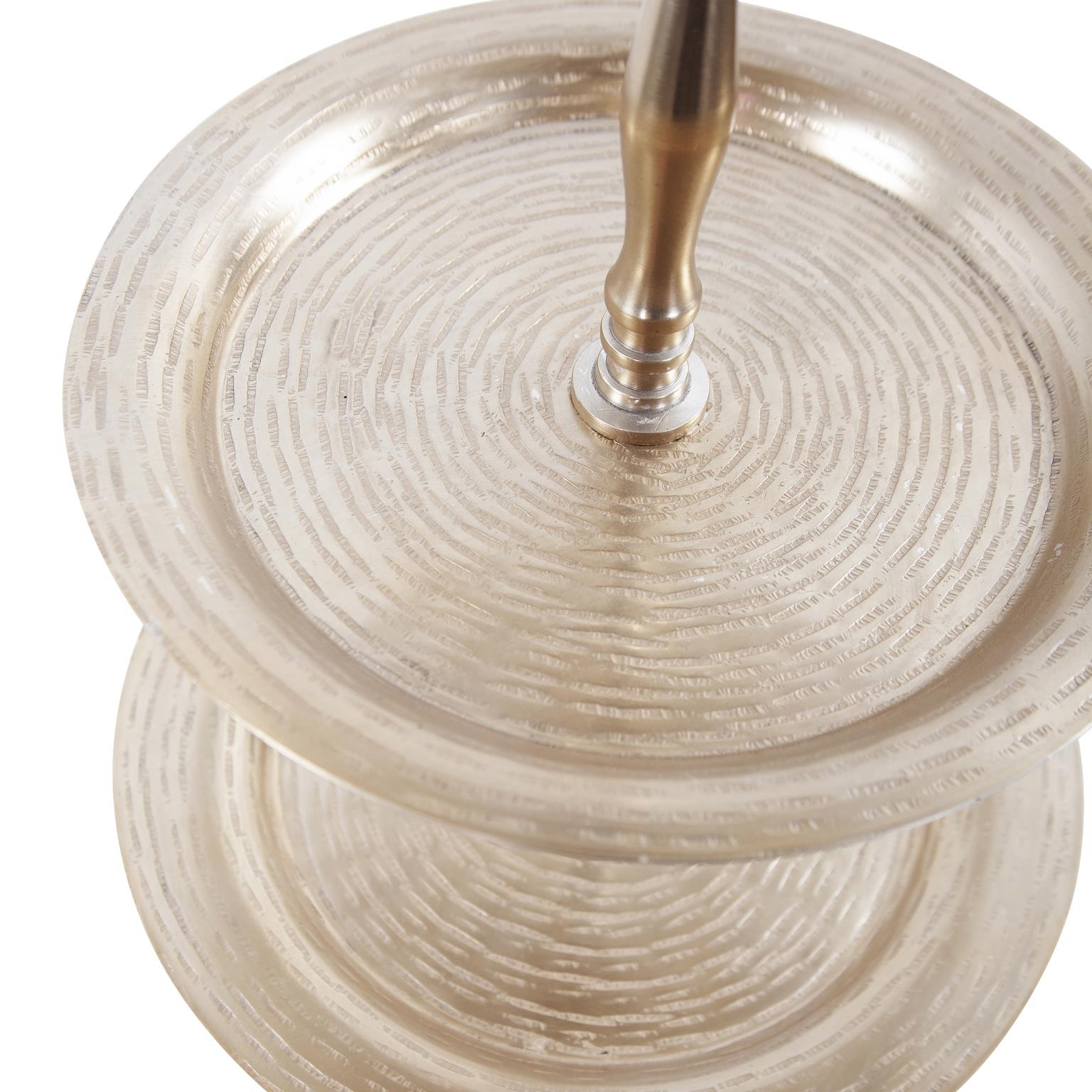 The Em Dash Collection is hand crafted and finished by expert artisans. The simple modern dash pattern also creates a hammered effect on the inside, that adds to the beauty of the design. Finished in a matte black or bright silver, each piece can easily stand alone as a decorative accent or grouped together to show the contrast of dark and light elements. The three tiered service tray can be used as a centerpiece for special occasions or everyday to showcase a collection of keepsakes.