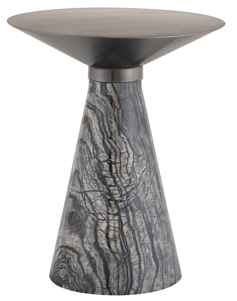 Iris Side Table - Graphite with Black Wood Vein Marble Base, 15.8in
