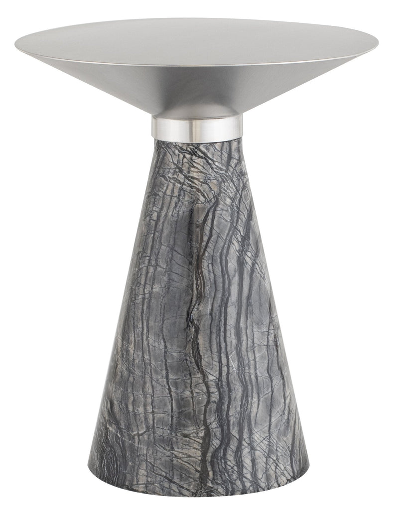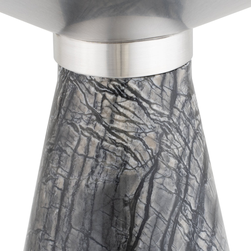 Iris Side Table - Silver with Black Wood Vein Marble Base, 15.8in