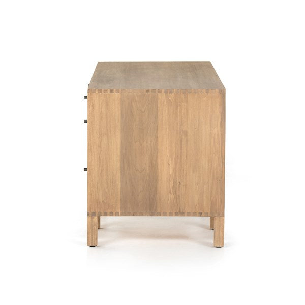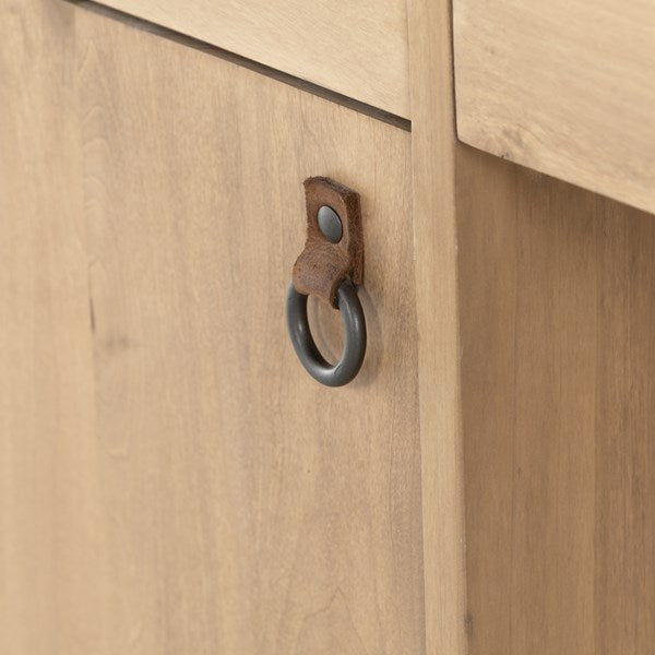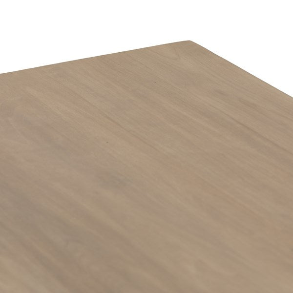 Beautifully simple in spirit. Solid dry-washed poplar forms a clean, Seventies-inspired executive desk with dovetail joinery plus iron and leather hardware, for a fresh, material-driven update to Shaker-like styling. Fully finished back grants the option to float desk anywhere in room.