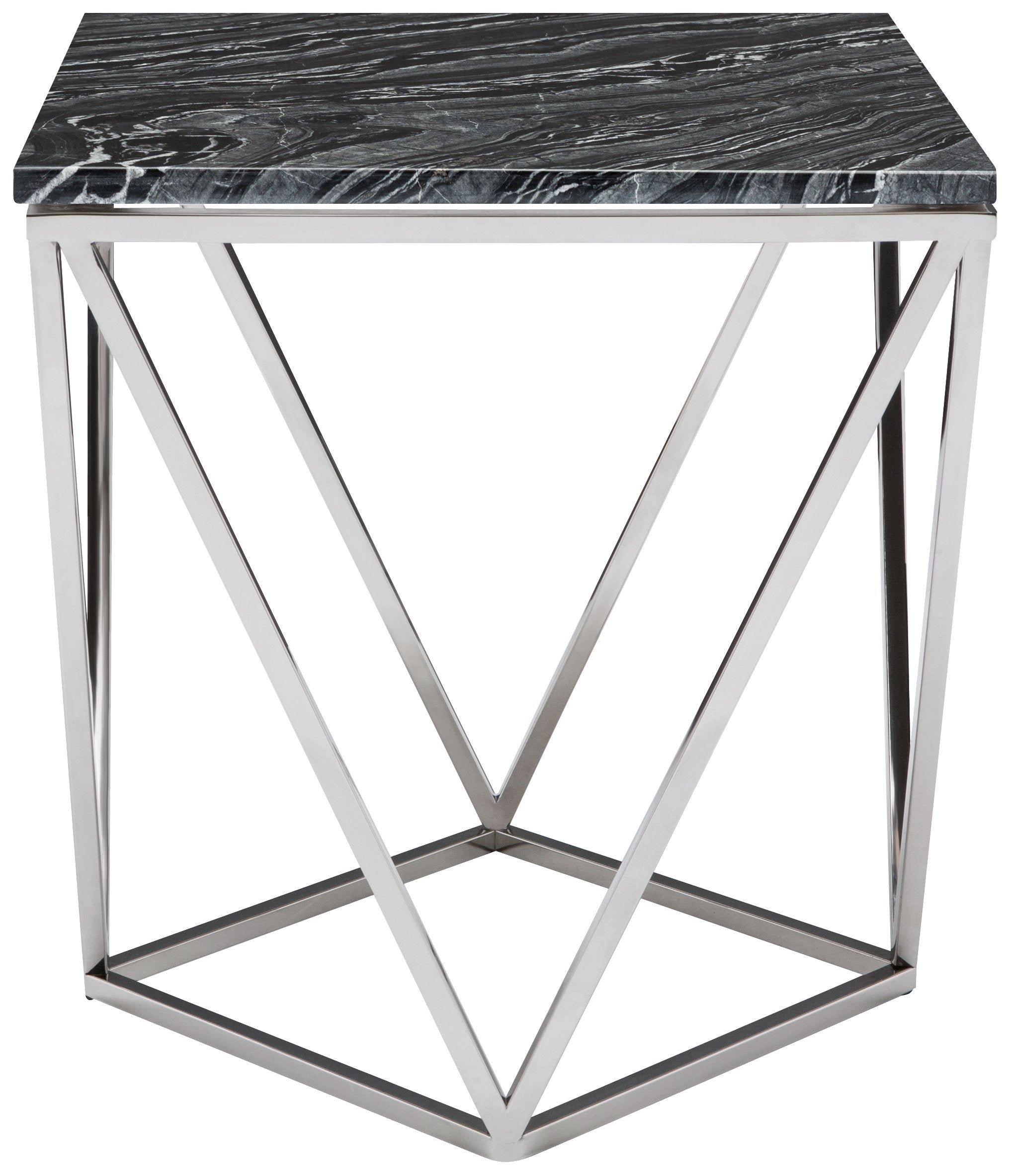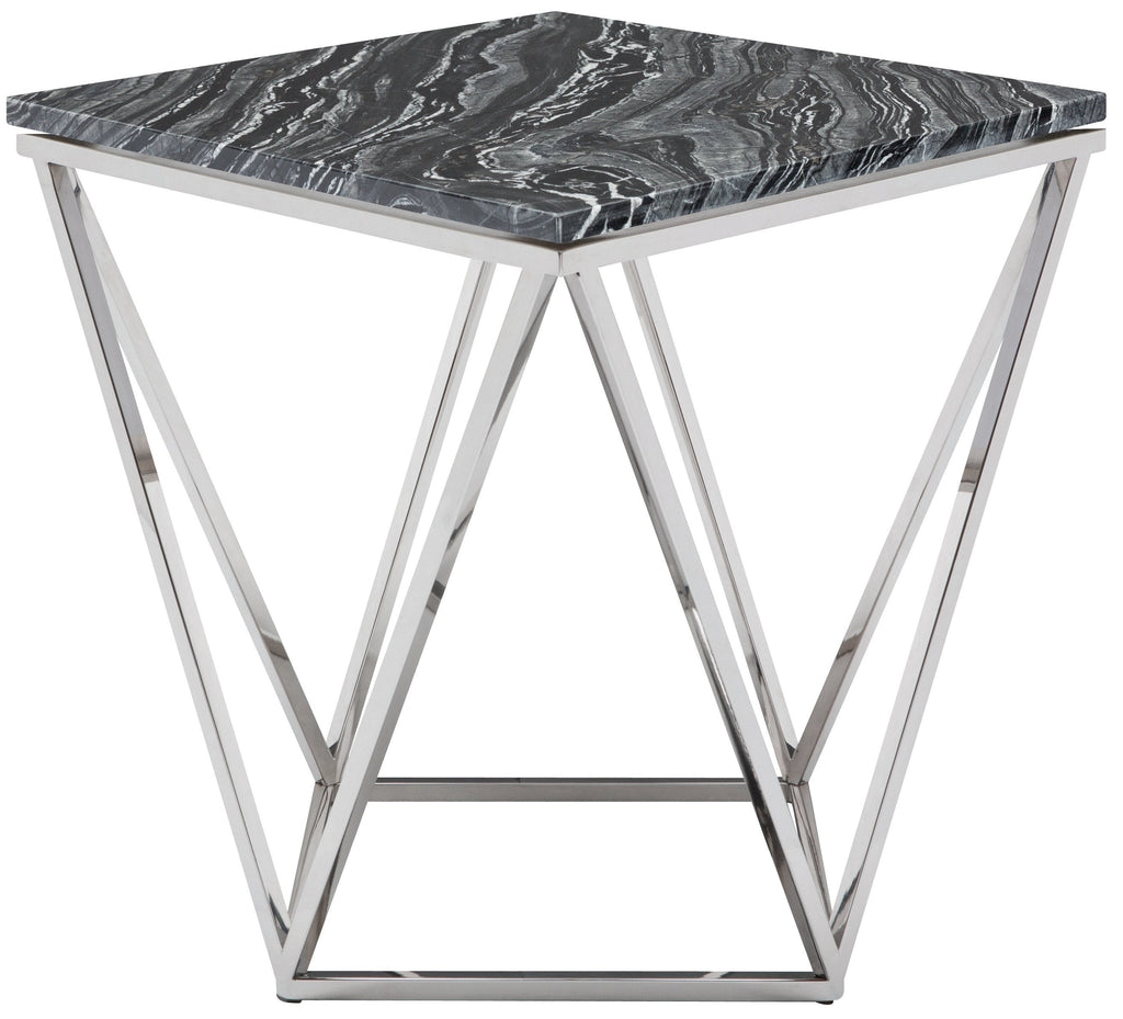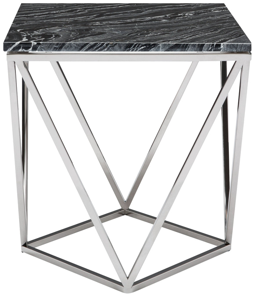 Jasmine Side Table - Black Wood Vein with Polished Stainless Base