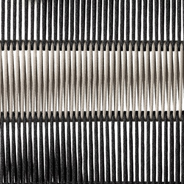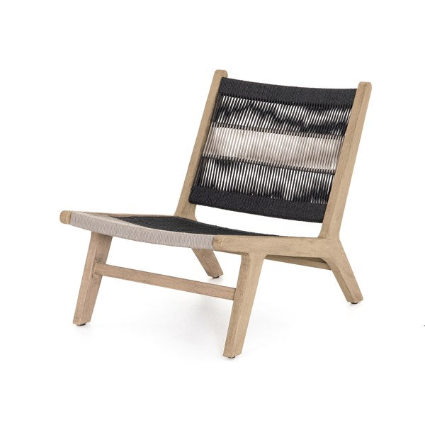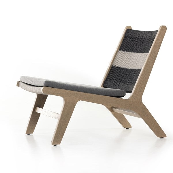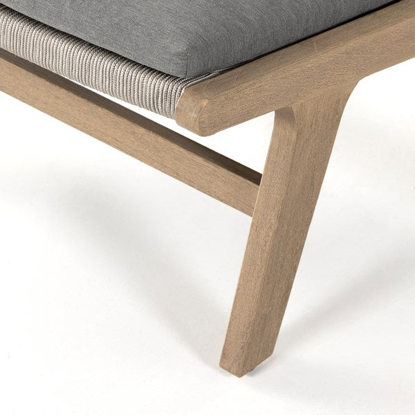 A textural take on outdoor seating. Low, washed brown teak framing welcomes handwoven rope in contrasting greys. Cover or store indoors during inclement weather and when not in use.