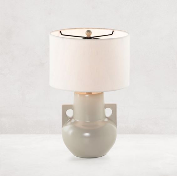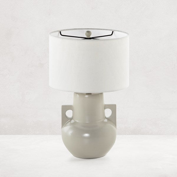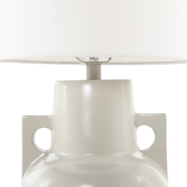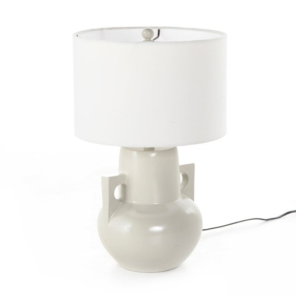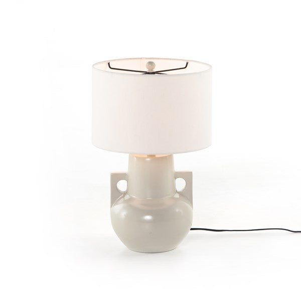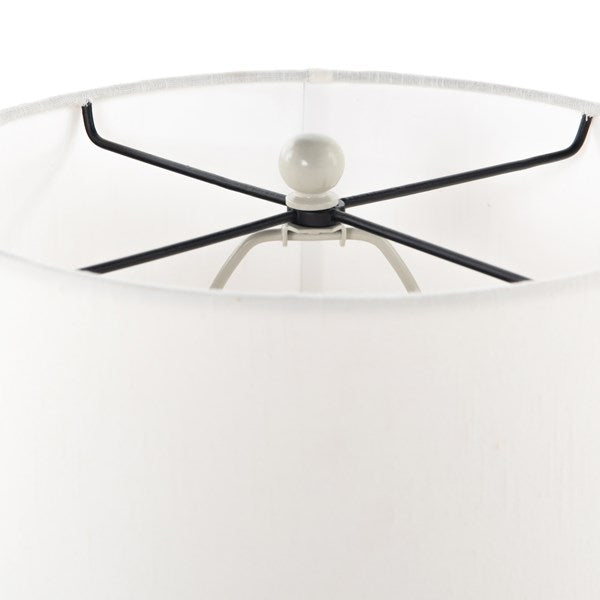 Smooth powder-coated aluminum forms a uniquely modern base, topped by a white silk shade.