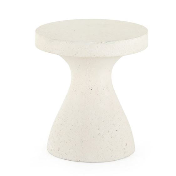 Smooth concrete is shaped into a durable, eyecatching outdoor end table. Its natural texture brings extra dimension and character to each piece. Cover or store inside during inclement weather and when not in use.