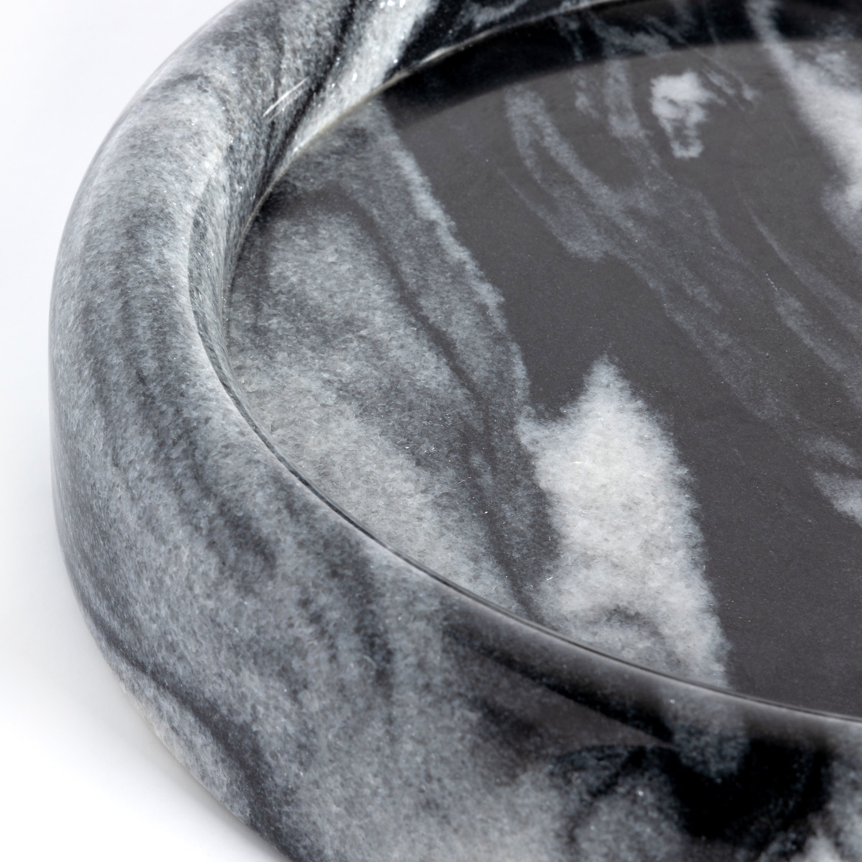 Never forget your keys. A large-scale catch-all dish holds all your necessities. Its simple shape lets the beautiful marble's highs and lows do the heavy lifting.