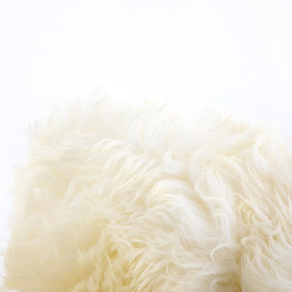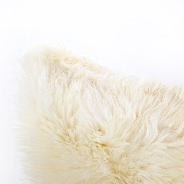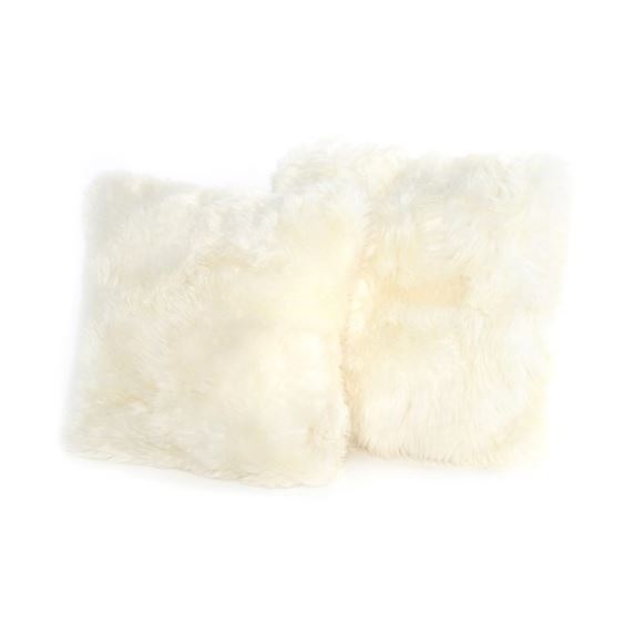 Toss in some texture with a set of white throw pillows handmade from unshorn sheepskin, with cotton filler and back covering.