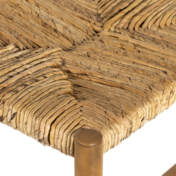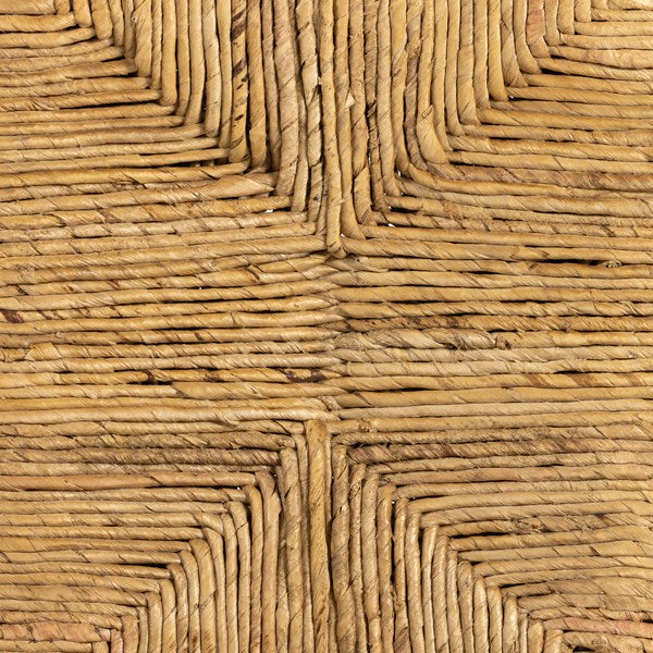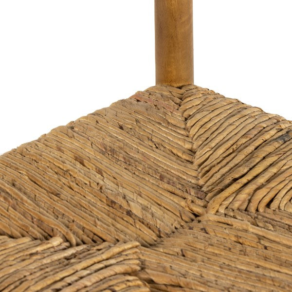 A fresh take on a vintage look, solid mango forms a clean, angular frame for a woven banana leaf seat.
