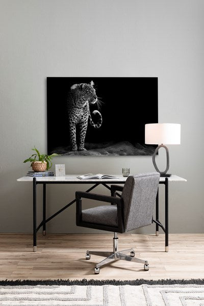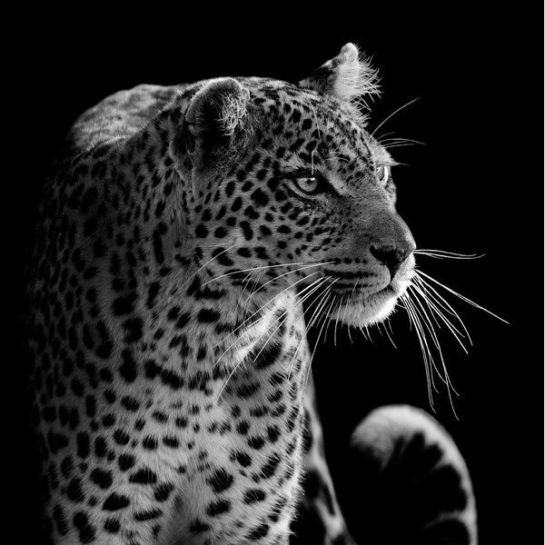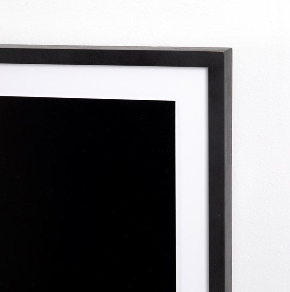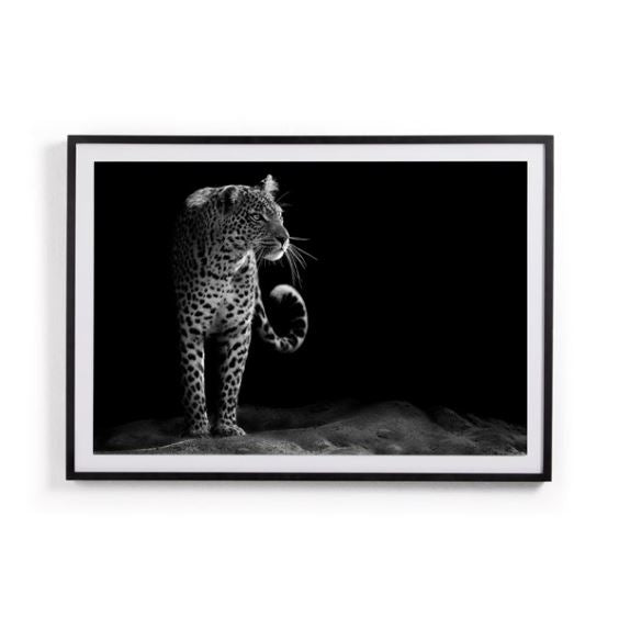Sharp focus and simple tones make for a beautiful black-and-white capture of a cheetah in studio light. Printed on top-quality photo paper and float-mounted within hand-painted black maple framing. Handmade in Austin, Texas as part of a specially curated collection by Four Hands Art Studio, with fixed hardware for quick and easy hanging.