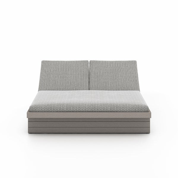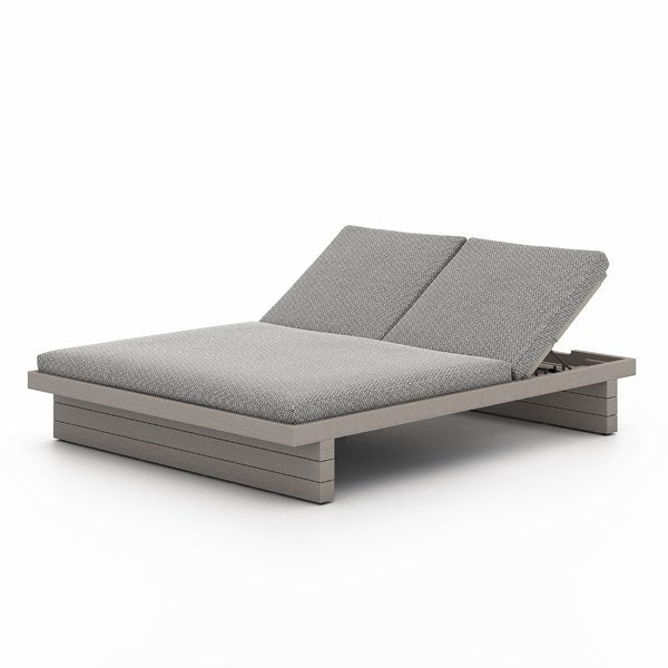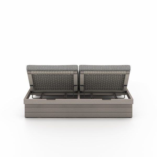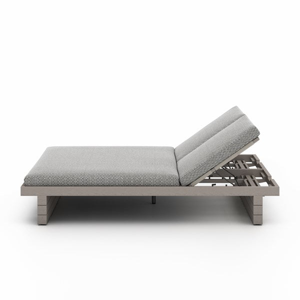 Recline in style, indoors and out. Finished in a weathered grey, FSC-certified teak forms an adjustable double frame for UV-resistant and water-repellent cushioning in a textural ash, with rear rope detailing for added dimension. Clever split back allows for varied recline angles. Cover during inclement weather and when not in use.