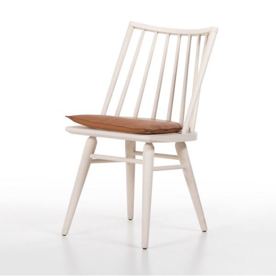 3. Lewis Windsor Chair with Cushion-Off White, Whiskey Saddle