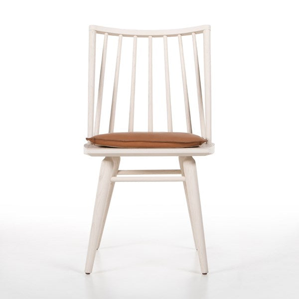 Lewis Windsor Chair with Cushion-Off White, Whiskey Saddle