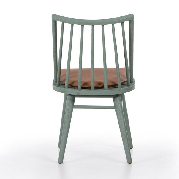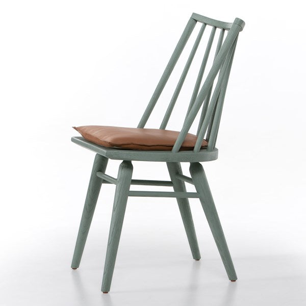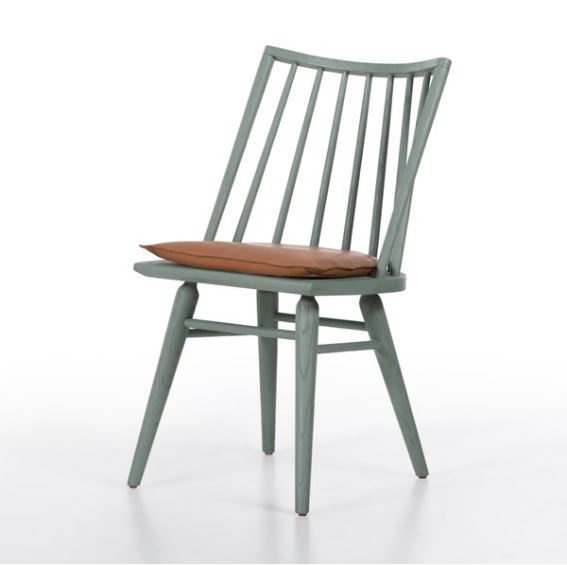 3. Lewis Windsor Chair with Cushion-Sage Green, Whiskey Saddle