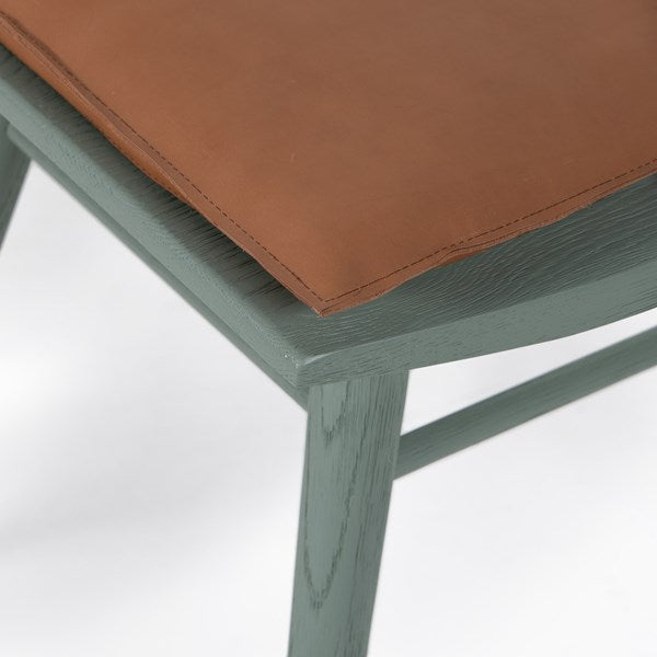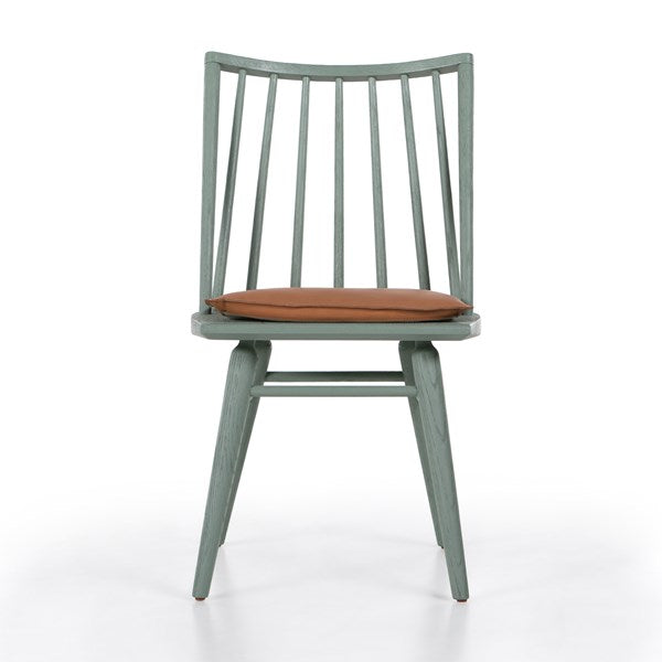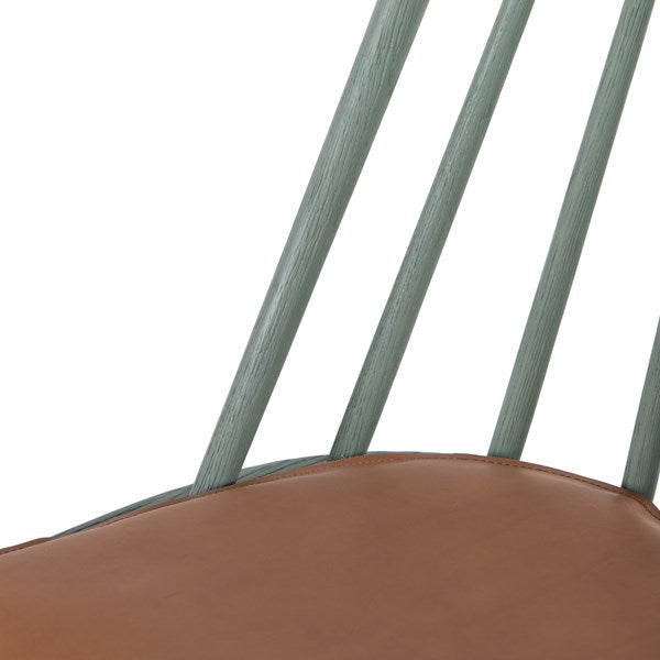 Lewis Windsor Chair with Cushion-Sage Green, Whiskey Saddle
