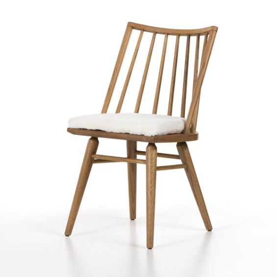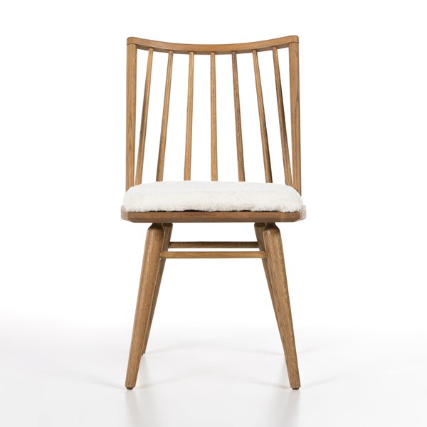 3. Lewis Windsor Chair with Cushion-Sandy Oak, Cream Shorn Sheepskin