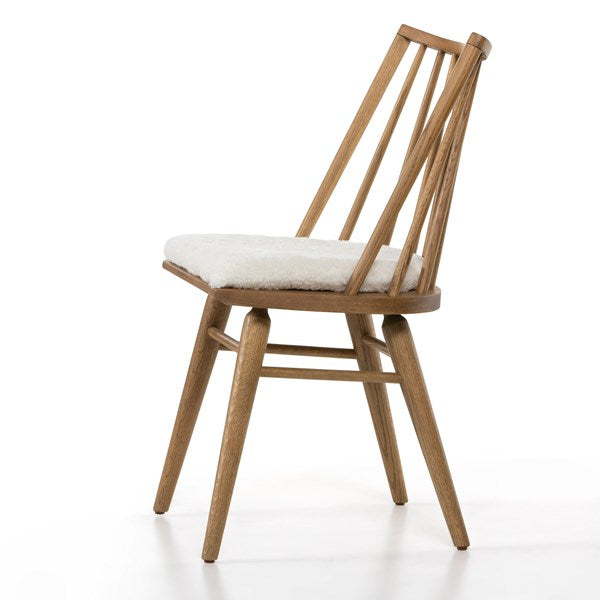 Lewis Windsor Chair with Cushion-Sandy Oak, Cream Shorn Sheepskin