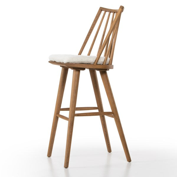 Lewis Windsor Stool with Cushion-Sandy-Bar, Cream Shorn Sheepskin
