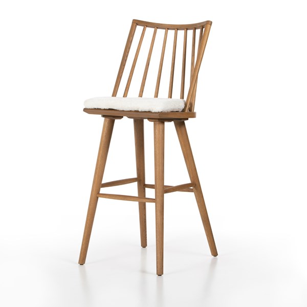 3. Lewis Windsor Stool with Cushion-Sandy-Bar, Cream Shorn Sheepskin