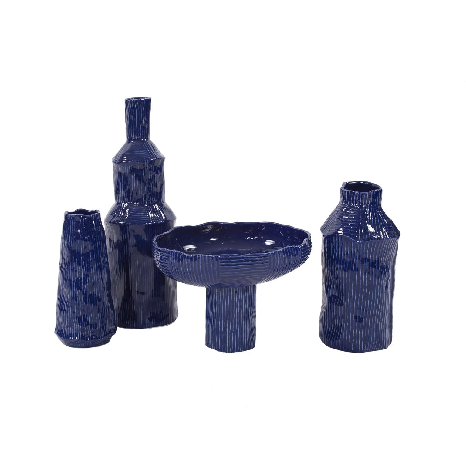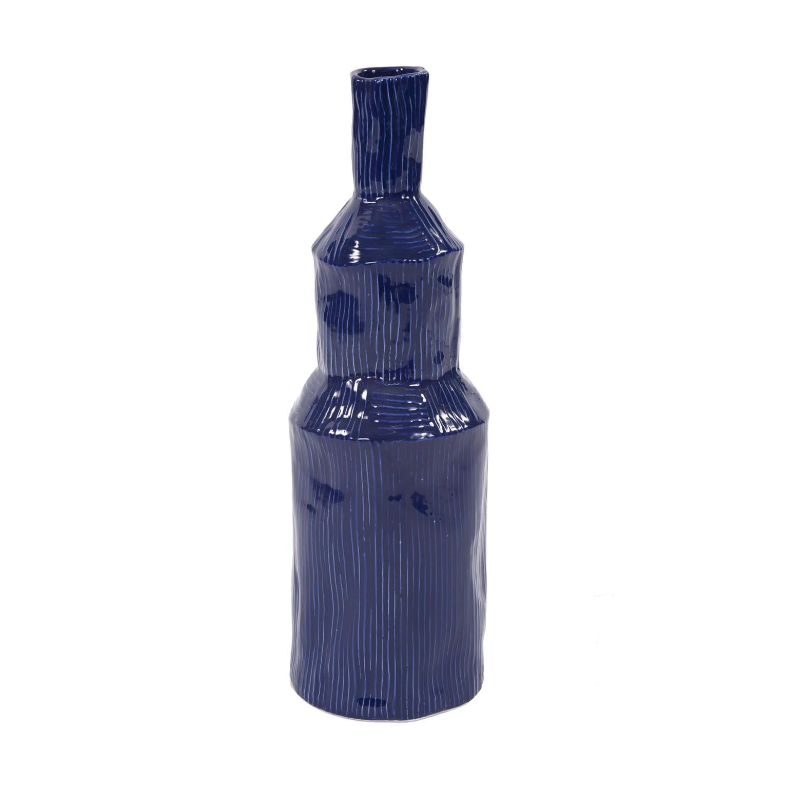 The Lipari Collection is named for the deep azure-colored waters surrounding the Mediterranean island of Lipari. The deep rich glossy color tones are highlighted by the free form shape and slight texture. Created from handmade molds and finish detailed by expert artisans, this three-tiered bottle takes on a uniquely artist flair either alone or in a grouping with the rest of the collection. Each piece is truly a work of art.