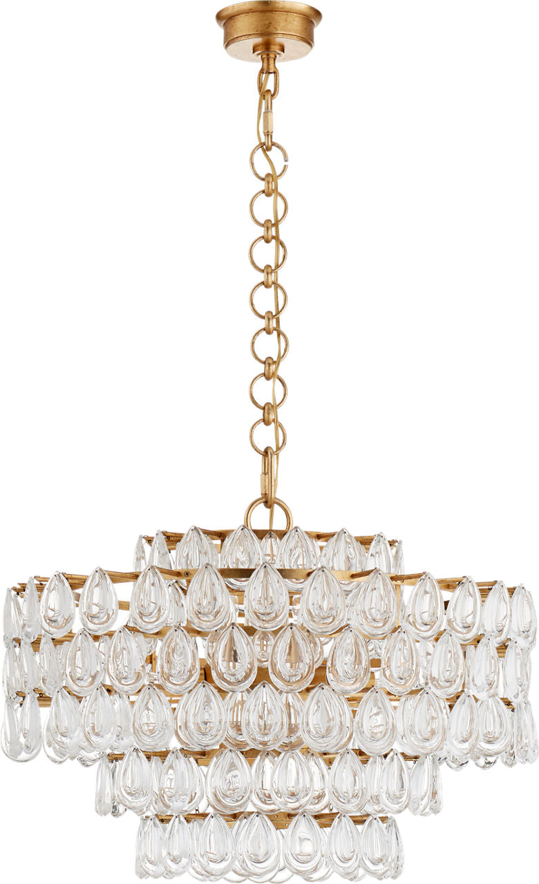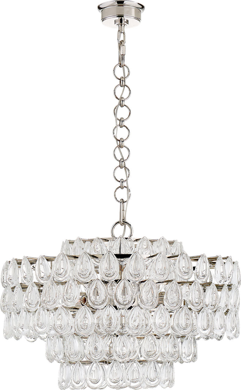 The Liscia by AERIN showcases classic elegance with unique teardrop crystals on a tiered metal framework. The versatile piece is a stylish focal point and brings sparkling light and classic elegance to a living room or dining room. The metallic accents are available in gilded or polished nickel finishes.