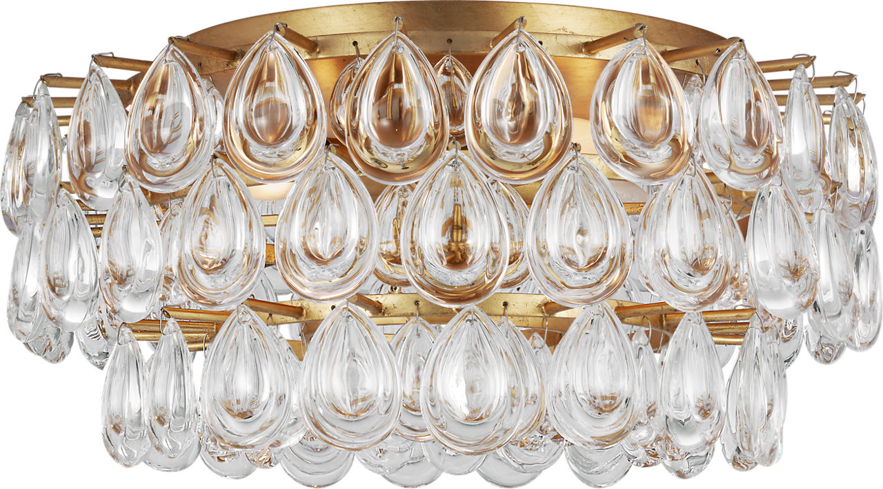 The Liscia by AERIN showcases classic elegance with unique teardrop crystals on a tiered metal framework. The versatile piece is a stylish focal point and brings sparkling light and classic elegance to a living room or dining room. The metallic accents are available in gilded or burnished silver leaf finishes.