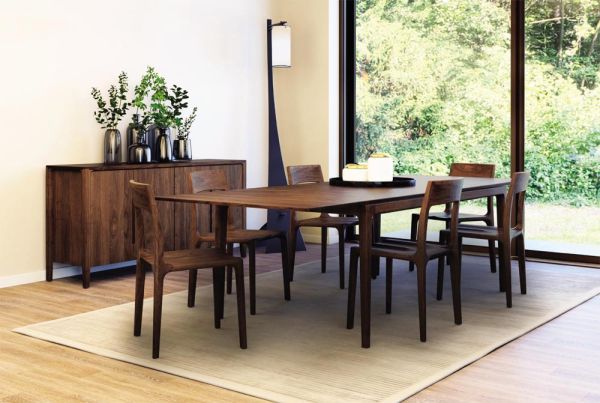 The Lisse Dining Room is crafted in solid American black walnut hardwood with natural finish. Dining items in walnut are finished with a low sheen (10 sheen) top coat. The finish is GREENGUARD Certified for low chemical emissions.