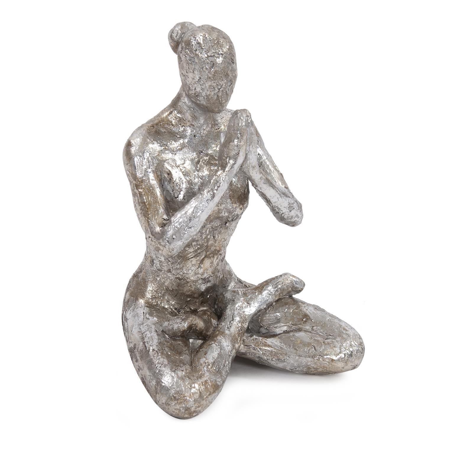 Namaste! Achieve inner peace with our Lotus Yoga Pose Figure. It features an abstract figure in posed in a lotus position with a subtle hammered texture and finished in an antique silver.
