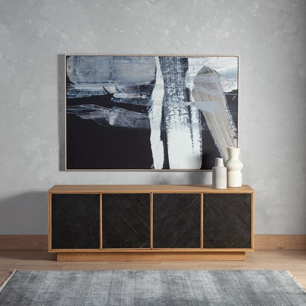 Driven by modern minimalism, artist and graphic designer Dan Hobday's unique rendering is framed within natural maple, for a clean, museum-quality look. Handmade in Austin, Texas.