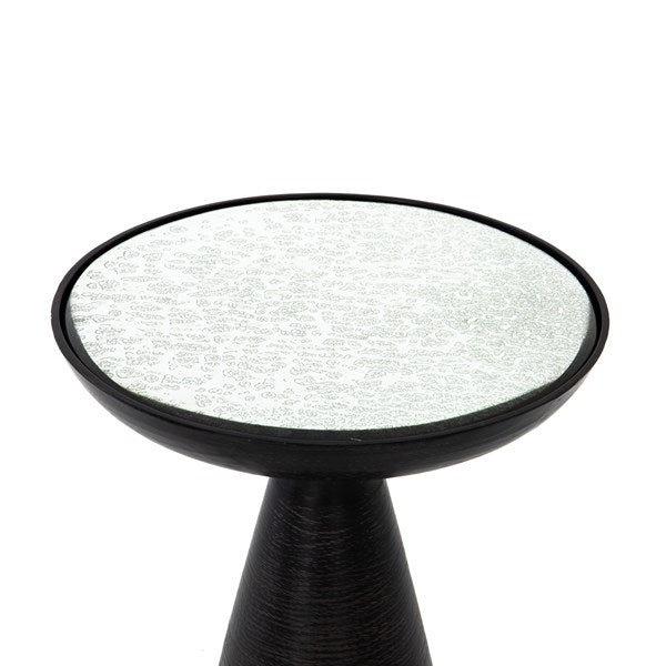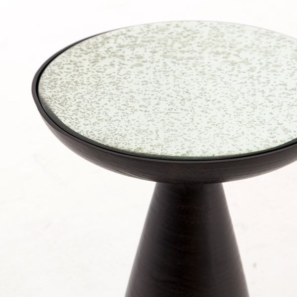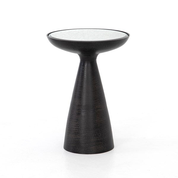 The vintage-inspired personality of this brushed bronze-toned pedestal table meets a mirrored top in ash glass to make a bold, modern statement with an on-trend metallic pop.