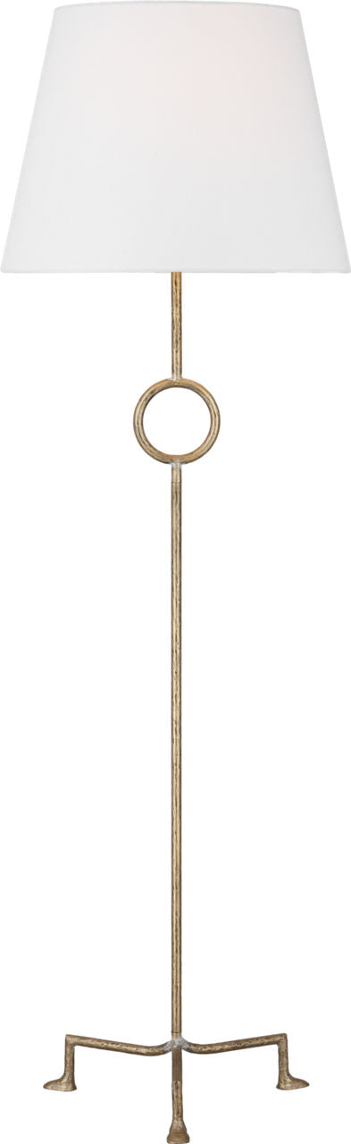 The Montour Large Floor Lamp by Thom Filicia is a stunning piece that features a clean, antique-inspired design that elevates any space. Its bold ring detail and simple white linen shade combine for a clean, elegant impression in living rooms, bedrooms, studies and other cozy spaces. Its elegant structure and slender form create a sophisticated presence, perfect for modern or traditional spaces. Dry-rated for versatile use, it casts a warm, inviting glow.