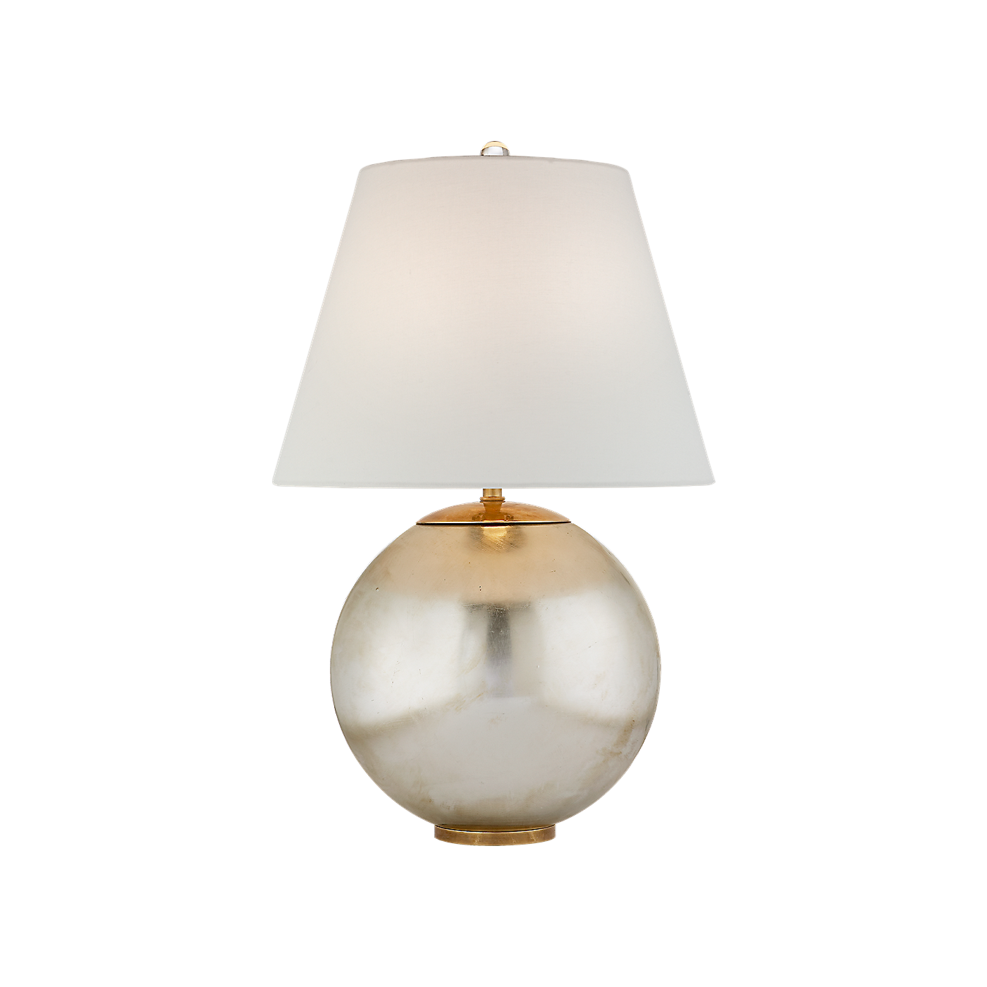 The Morton by AERIN provides an elegant balance for traditional and modern spaces. The globe-base design comes in clear glass, gilded or burnished silver leaf finishes, and will enhance any living room end table as a matching set or on its own.